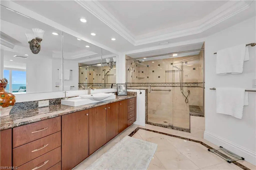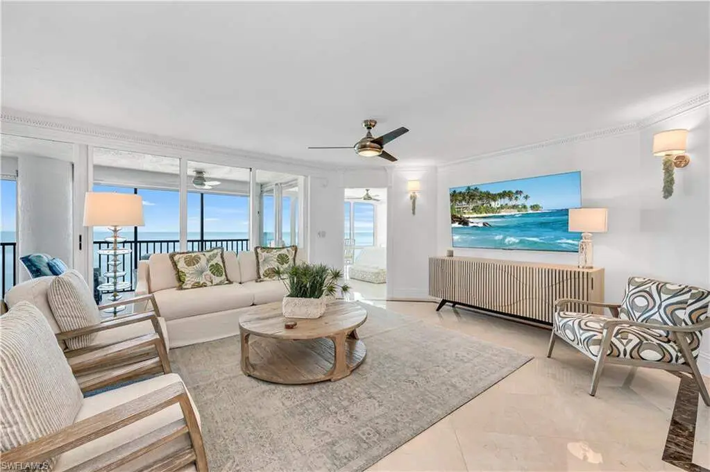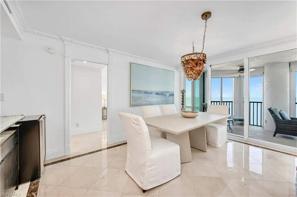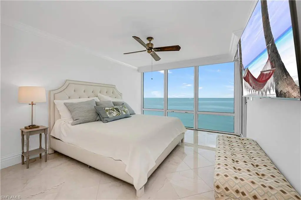 Rarely available and one of the most sought-after beachfront properties on Gulf Shore Boulevard, Vistas at Park Shore offers captivating panoramic views of the Gulf. Imagine watching sunsets over the world-renowned Naples white sand beaches. This contemporary open floorplan has been meticulously designed to showcase the breathtaking direct Gulf views and maximize living space, making it ideal for entertaining guests. The unparalleled amenities at Vistas at Park Shore redefine luxury high-rise living. Residents enjoy access to guest suites, a well-equipped fitness center, a community room, a pool, and a spa. Offered fully furnished, this unit provides a vacation-ready lifestyle. The building provides 24-hour concierge service to ensure your utmost convenience and security. Vistas at Park Shore is conveniently located just minutes from some of Naples' most desirable amenities, including Venetian Village, Waterside Shops, and highly rated healthcare facilities. Additionally, boat slips are available for purchase or lease across the street at the Venetian Bay Yacht Club.