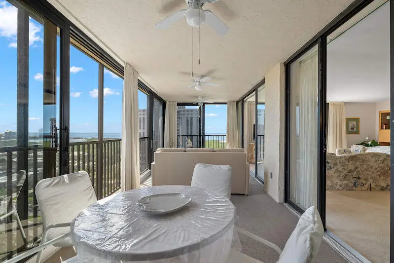 Welcome to this desirable 12th-floor condo in the highly sought-after Chateaumere community of Pelican Bay, where breathtaking panoramic southwest views of Clam Pass, the Gulf of Mexico, and mesmerizing sunsets with twinkling lights of downtown Naples await you. This stunning 2-bedroom, 2-bathroom fully furnished unit with a spacious enclosed lanai is truly a paradise in the sky. The open-concept floor plan ensures a seamless flow from room to room, enhancing comfort and convenience. The living area is bathed in natural light, thanks to large impact-resistant windows and sliding glass doors that frame extraordinary views. The eat-in kitchen boasts full views of the white sand beaches, making every meal a scenic delight. The spacious Master Suite is a tranquil oasis, featuring an en-suite bathroom with a double vanity and a walk-in shower. The guest bedroom and hall bath provide additional comfort for visitors. Residents of Chateaumere Royale enjoy access to 3 swimming pools, a fitness center, 3 guest suites, bike storage rooms, and a community room with a full kitchen and pool table, along with all the amenities of Pelican Bay. Pelican Bay offers tram service to 2 private beach clubs equipped with chairs umbrellas and kayaks, as well as 2 private restaurants open for lunch and dinner. The club features 18 tennis courts, another fitness center, and even yoga on the beach. Chateaumere is set on nearly 10 acres and is conveniently located less than 2 miles from Artis Fine Arts Theatre and Waterside Shops with fine dining and shopping. Centrally located near Mercato, Whole Foods, Fresh Market, and much more! Easy access to downtown Naples, renowned for its fine dining, shopping, and beautiful beaches.This condo comes with a rental with income.