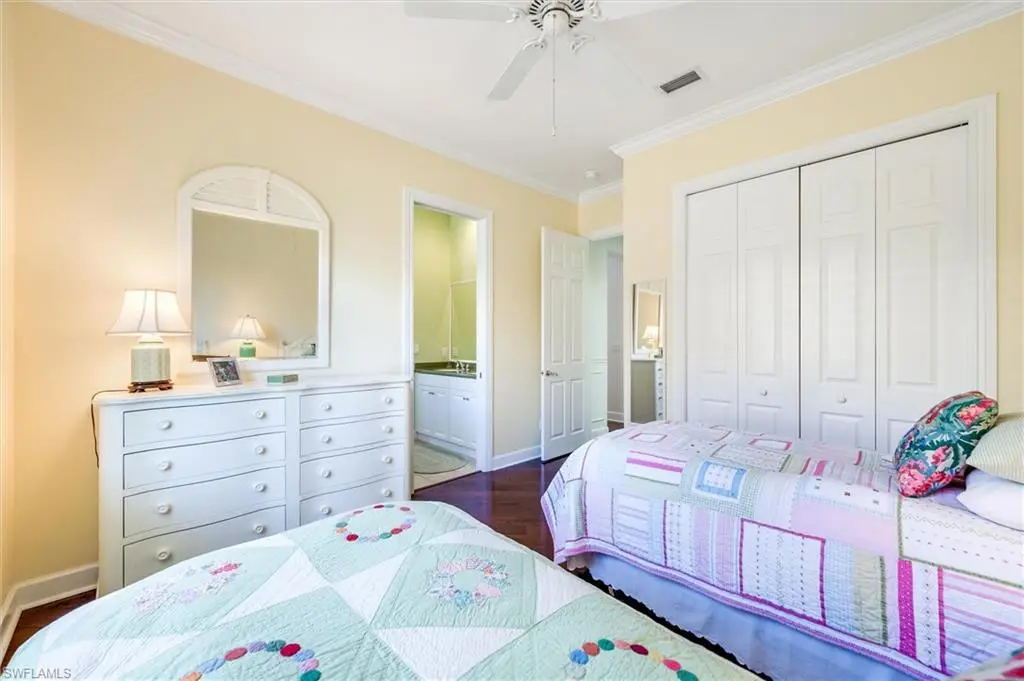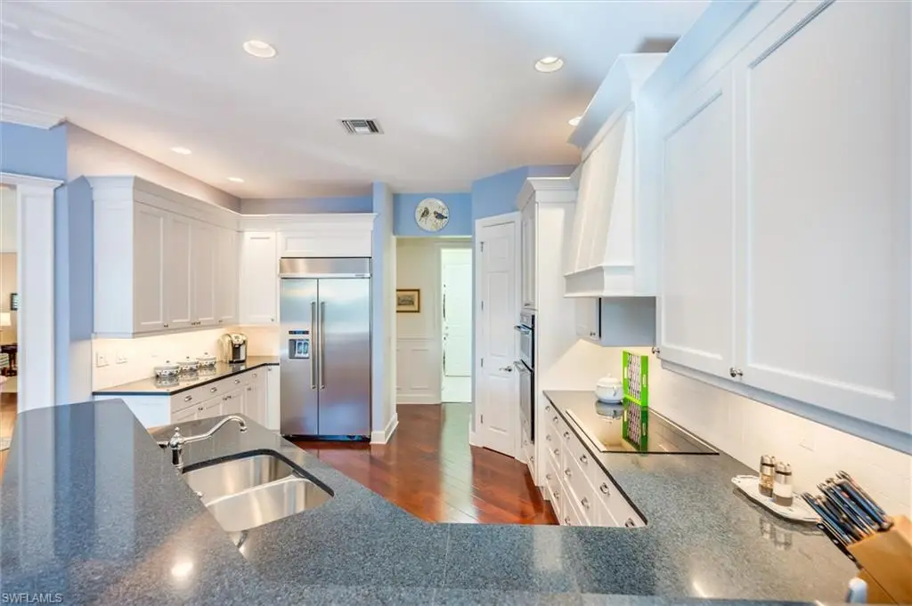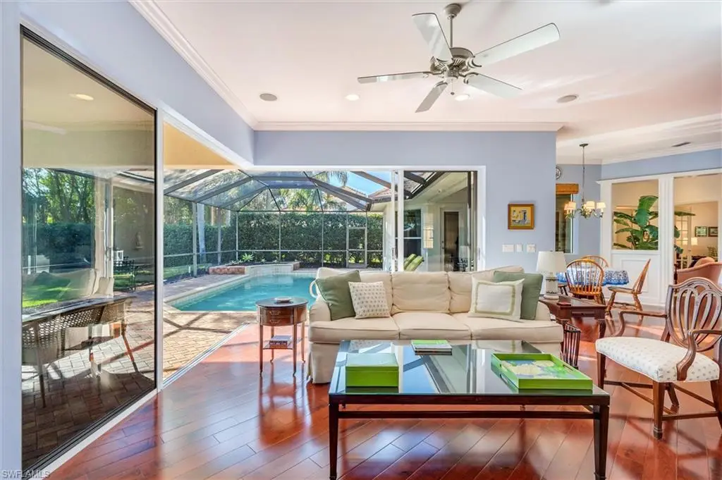 Banyan Woods, A Best-Kept Secret. Naples meets Palm Beach in Banyan Woods. Timeless sophistication. Impeccable details and design and quality craftsmanship. Centrally located within Naples. Fabulous curb appeal with attractive landscaping. An abundance of natural light flows into this 2945 under a/c SF home with a split open floor plan. Striking walnut hardwood flooring throughout, custom moldings, remodeled kitchen with custom white wood cabinetry and hood. The spacious kitchen is laid out perfectly and features quartz countertops with a marble backsplash, a 42ö extra wide refrigerator and Kitchen Aid stainless steel appliances, large pantry, and plenty of space for a coffee bar and more. The floorplan offers 4 generous size bedrooms, study, 3 full baths, morning nook and great room, plus formal living, and dining areas. The ideal outdoor space with private south facing heated pool boasts a new pool heater (2025), large pool deck, two undercover patios, and a yard surrounded by lush hedges in an X Zone. It is a pleasure to show this pristine and well-maintained home with everything in top-notch working condition - two HVACÆs, water heater, irrigation system with new timers and rain gauges, updated ceiling fans, epoxy garage flooring, Hunter Douglas window treatments, and plantation shutters. Perfectly situated with views of the beautifully landscaped community, in a quiet location near the clubhouse with fitness center. Banyan Woods is a gated community with 100 lushly landscaped estate homes and 88 carriage homes. Located south of Pine Ridge Road just north of Grey Oaks Golf and Country Club and west of Kensington Country Club, and all the convenience shopping one could want is right outside the back gate. This desirable and convenient location is only minutes to downtown and Fifth Ave for world-class dining and shopping, THE MERCATO for nightlife, white sandy beaches, hospitals, public and private schools and more! You will want to see this gracious and lovely home for yourself so don't hesitate! Mrs. Clean owns this home...you CAN eat off the kitchen floor!