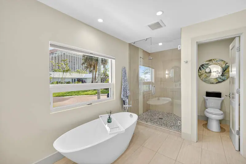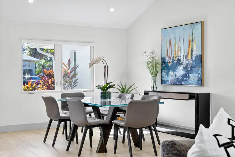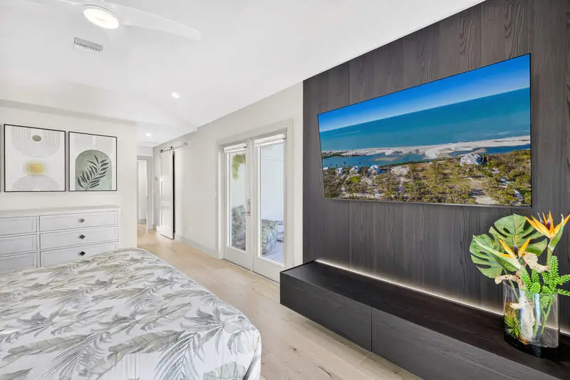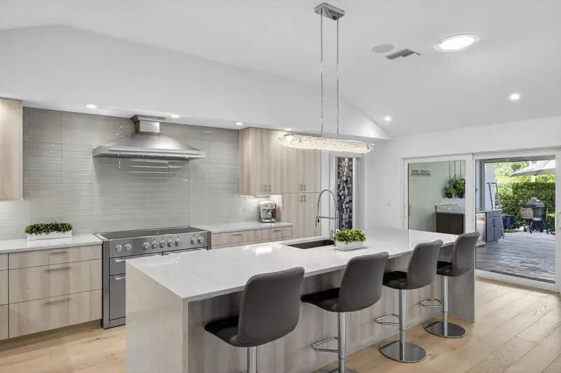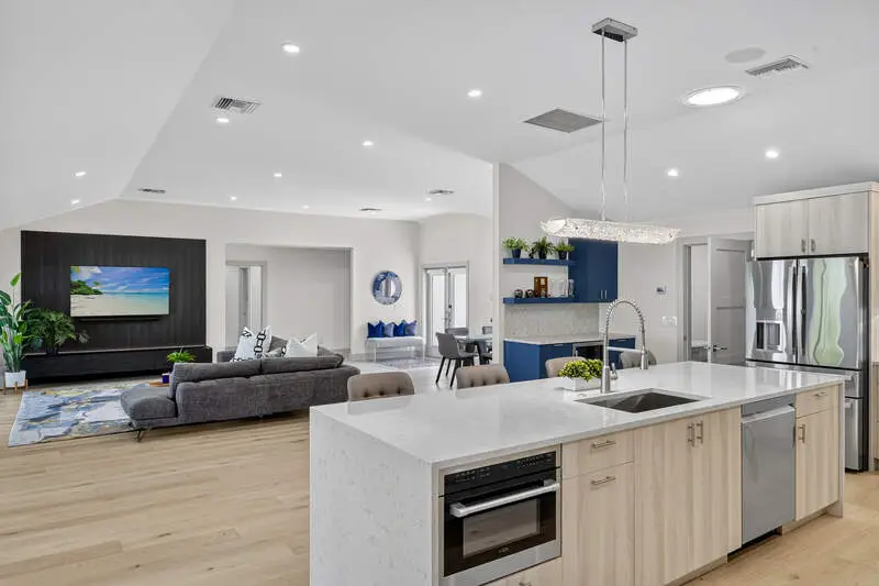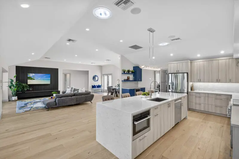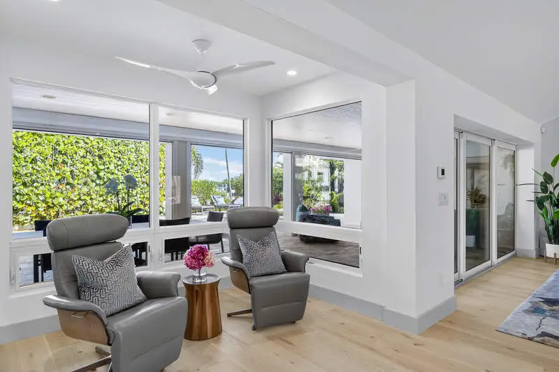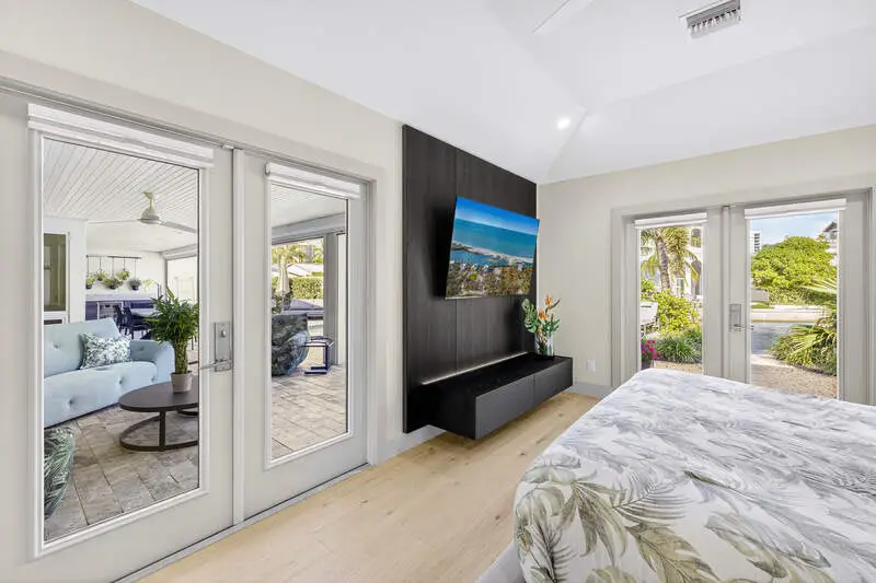 Welcome to 5215 Seashell Avenue in the highly coveted waterfront enclave of Seagate. Tucked away at the end of a quiet cul-de-sac surrounded by high-end homes is this 4 Bedroom/3 Bathroom waterfront home with 110 feet of canal frontage. This exceptional home was thoughtfully redesigned by renowned local architect, MHK Architects, and was completely renovated inside and out in 2023. This home boasts a light and airy mid-century contemporary flair inspired by California ranch-style architecture. Enter into an open-concept living space with spacious living room replete with vaulted ceilings, wide plank light oak hardwood floors and dramatic contemporary accent wall. Wall of glass opens to the rear outdoor space seamlessly blending indoor/outdoor living. A true chef's eat-in kitchen features sleek European-style flat panel cabinetry, oversized island with waterfall edges, stainless steel appliances, bar area plus lovely dining room ideal for entertaining. Master suite oasis with spacious bedroom with contemporary accent wall, walk-in closet with custom built-ins and a spa-like en-suite bath with custom double vanity, step-in shower, freestanding soaking tub and separate water closet. Split floor plan with 2 additional guest bedrooms with full baths plus a 4th bedroom currently set up as an office/media room. Convenient laundry room with great storage. 2-car attached garage with epoxy floor. Outdoor resort-style private oasis with covered living and dining area, TV, gorgeous pool and spa plus a canal front patio with firepit. A boater's dream with direct water access and a floating dock. Optional Seagate Beach Club membership offers private beachfront access. Truly exceptional and a great value for this highly desirable neighborhood. Easy access to schools, Waterside Shops, downtown Naples, I-75 as well as Naples and Fort Myers airports.