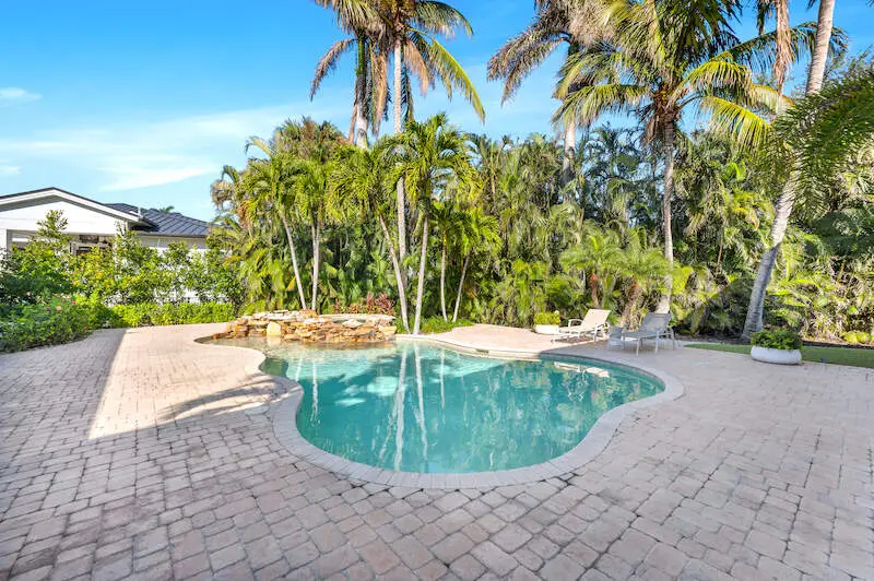 405 Rudder Road in Naples, Florida, is a stunning coastal residence located in the exclusive Moorings neighborhood. This beautifully designed home offers 4,405 square feet of elegant living space on a lush 0.39-acre lot. Built in 2003 and recently updated, the property features four bedrooms, including two ensuite master suites, along with three full bathrooms and one half bath. Inside, the designer-decorated interiors blend luxury with comfort, featuring a state-of-the-art kitchen equipped with top-tier Miele appliances. The spacious layout includes a den, a loft, and a balcony overlooking the sparkling pool. High ceilings and large windows bring in natural light, creating an inviting and open atmosphere. The outdoor space is just as impressive, boasting a tranquil front yard pond, tropical landscaping, and a private courtyard with a heated gas pool, spa, and outdoor shower. A whole-house generator ensures uninterrupted comfort. Residents of this home enjoy access to the exclusive Moorings Private Beach Club, offering a pristine beach experience just minutes away. The property is also conveniently located near the upscale shopping and fine dining of 5th Avenue and 3rd Street, making it an ideal retreat for those who appreciate the best of Naples living. Listed at $4,500,000, this exceptional home offers luxury, privacy, and prime location in one of Naples' most sought-after communities.