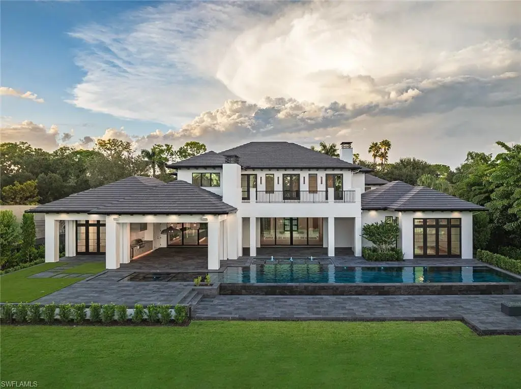 Full golf membership availability. Pre-construction pricing on this fabulous home is perfectly located in sought-after Grey Oaks Country Club. The team for this custom spec home comprises of Diamond Custom Homes, Kukk Architecture, and Knot and Tide Interiors. Home features exquisite finishes, 6 bedrooms +Den + Loft, 6 Full Baths, 2 Half Baths, and extensive pool complex with spa, outdoor kitchen/bar, and fire feature. The stunning kitchen includes ample storage, chef's grade appliances, and built in pantry. The spectacular great room capitalizes on views of the pool area and includes voluminous ceilings and a captivating fireplace. A private master bedroom provides a perfect getaway with spa like retreat. Residence is finished with a full 5 car garage, with extra storage. Spectacular western exposure providing endless sunsets. With the option of becoming a member of Grey Oaks Country Club you will have 54 holes of golf, newly renovated wellness center, lagoon style pool, tennis, pickleball, bocce, restaurants, spa, and extensive amenities at your fingertips. All just minutes from downtown Naples world-class shopping fine dining and white sand beaches. To be completed 2025.