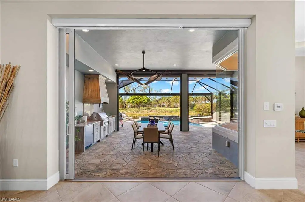 Welcome to your fully furnished, two-story home with a 3-car garage and coveted southern exposure. Step inside and be greeted by soaring ceilings and stunning views from nearly every room. The gourmet kitchen is a chef's dream, complete with a large island and spacious pantry. The first-floor master suite offers ample storage with two walk-in closets and an en-suite bath featuring a separate shower and soaking tub. This floor also includes a guest suite, a cozy den, and a powder room for added convenience. Ascend the elegant staircase to the second-floor guest en-suite and a versatile club room with a bar, half bath, and a covered balcony with beautiful views, making it perfect for entertaining. Your outdoor oasis awaits on the expansive covered lanai with picture window screens, complete with a fully equipped outdoor kitchen, a luxurious pool and spa, and a cabana bath, and outdoor shower. Electric storm shutters offer protection and peace of mind. Located in The Isles of Collier Preserve, this home provides access to top-tier amenities, including a fitness center, resort-style and lap pools, tennis, pickleball, hiking and biking trails, kayaking, and catch-and-release fishing included in your HOA. Direct access path to the East Naples Pickleball Courts. Enjoy socializing at the private Overlook Bar & Grill, all just 4 miles from the shops and restaurants of Naples' 5th Avenue and 3rd Street, and moments from the sandy beaches.