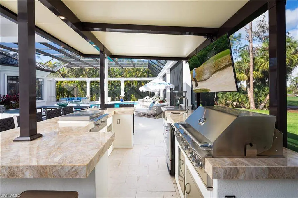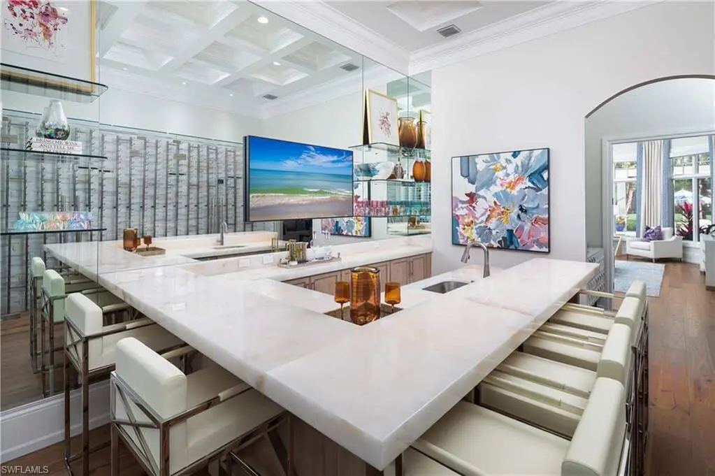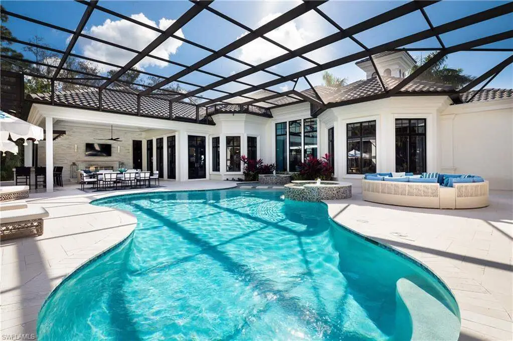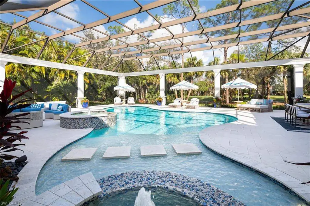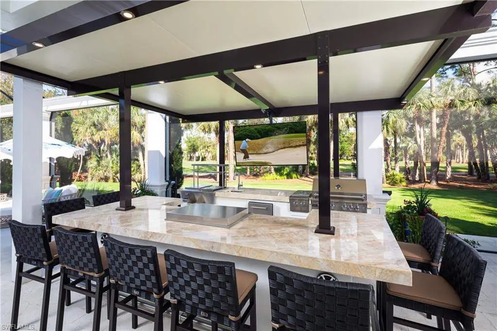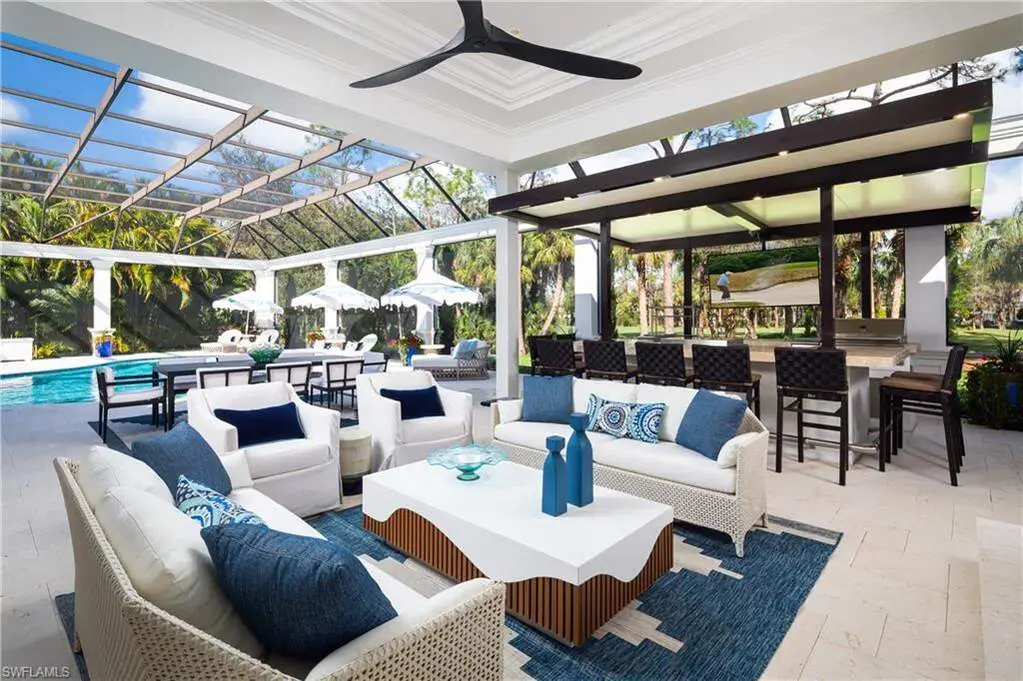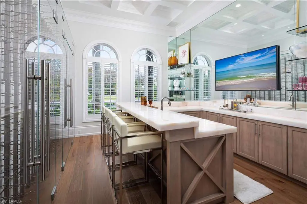 IMMEDIATE GOLF MEMBERSHIP AVAILABLE WITH THIS SALE (SKIP THE WAITLIST)! BUYER SAVES $180K ON GOLF INITIATION FEE BY TRANSFERRING SELLER'S GOLF MEMBERSHIP! Fully renovated, state-of-the-art estate situated in the highly sought-after Quail West community in Naples. This masterpiece sits on a nearly 1-acre lot with beautiful golf course views, a park-like setting & one of SWFL's finest outdoor entertainment areas with resort-style pool/spa, water features, state-of-the-art outdoor kitchen/bar & super screen picture window enclosure. Designed for ultimate enjoyment, the outdoor kitchen and bar offer seating for nine, featuring exquisite Taj Mahal granite, a grill, cooktop, burners, dishwasher, fridge, and a cocktail station. Inside, no detail has been overlooked, with European oak hardwood floors, & brand newly redesigned high-end furnishings & decor, custom designer wall coverings throughout, impressive distinctive light fixtures & luxurious custom draperies. Boasting 4,972 sq ft of living space, this home offers 4 spacious bedrooms, a spacious bar room with a 650 bottle wine wall (could also be converted back to a den), stunning formal dining room, a large laundry room with plenty of storage, and two 2.5-car garages with a motorized gate. Immaculately maintained, the property features hurricane impact windows, new hot water heaters, 3 new HVAC units (2022), 2 generators, a water filtration system, smart home automation with Lutron lighting, and a Sonos sound system. The chef's kitchen is a true culinary masterpiece, with pristine white cabinetry, high-end granite countertops, an oversized island, expansive walk-in pantry, and top-tier appliances, including a Thermador double oven, dual Viking dishwashers, Sub-Zero refrigerator drawers, Dacor microwave, and a Wolf gas cooktop with a hood. The primary suite serves as the perfect retreat, offering stunning views of the pool area and golf course. Its spa-like bathroom features dual vanities, a makeup vanity, a standalone soaking tub, and a luxurious frameless glass shower with a bench. Quail West is known for its world-class amenities, including two championship golf courses, a newly renovated 100,000 sq ft clubhouse, a Racquet Sports complex, an indoor lagoon-style Junior Olympic pool, a variety of dining options, a state-of-the-art fitness center, and a full-service salon and spa with a sauna. Just minutes from Barefoot Beach, Mercato, Waterside Shops, and Naples' iconic 5th Avenue, this prestigious community offers easy access to RSW and Naples airports.