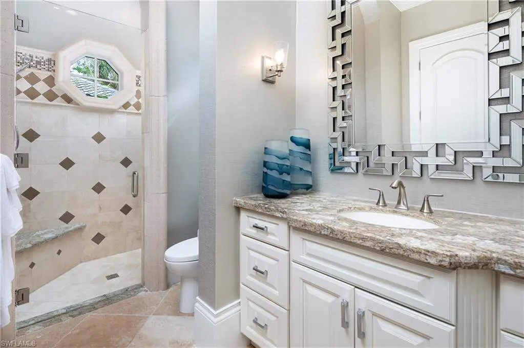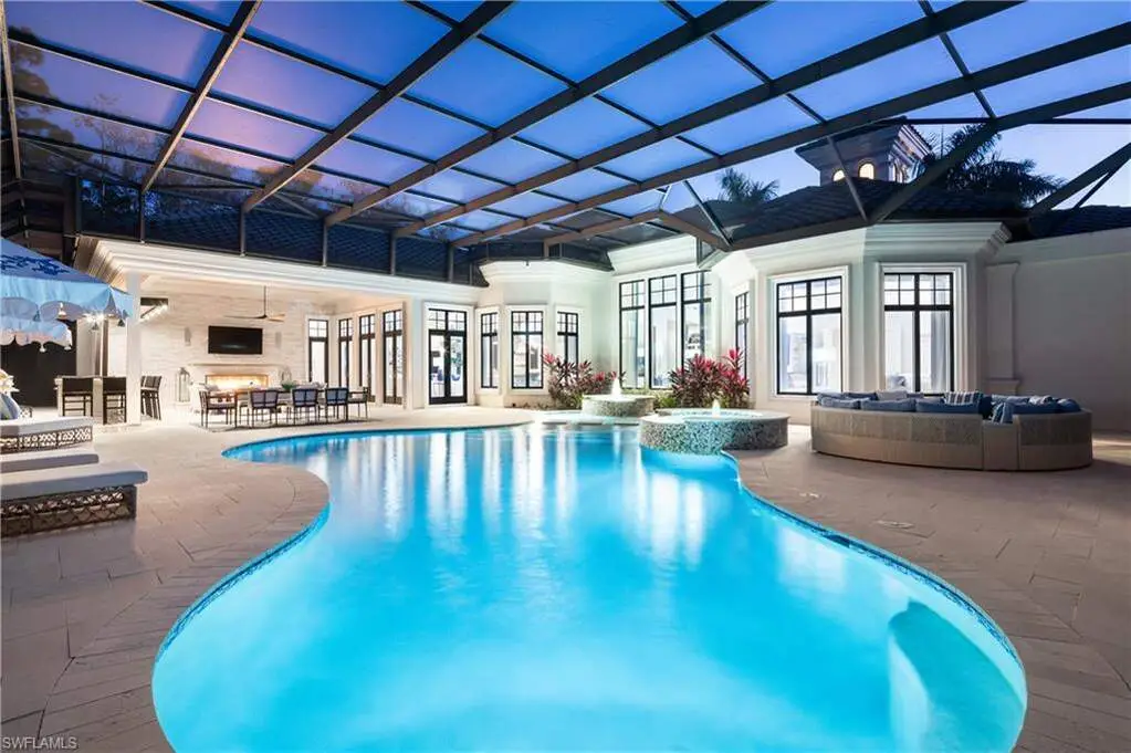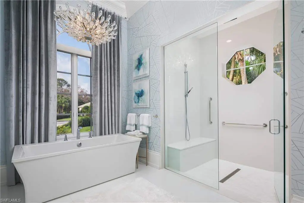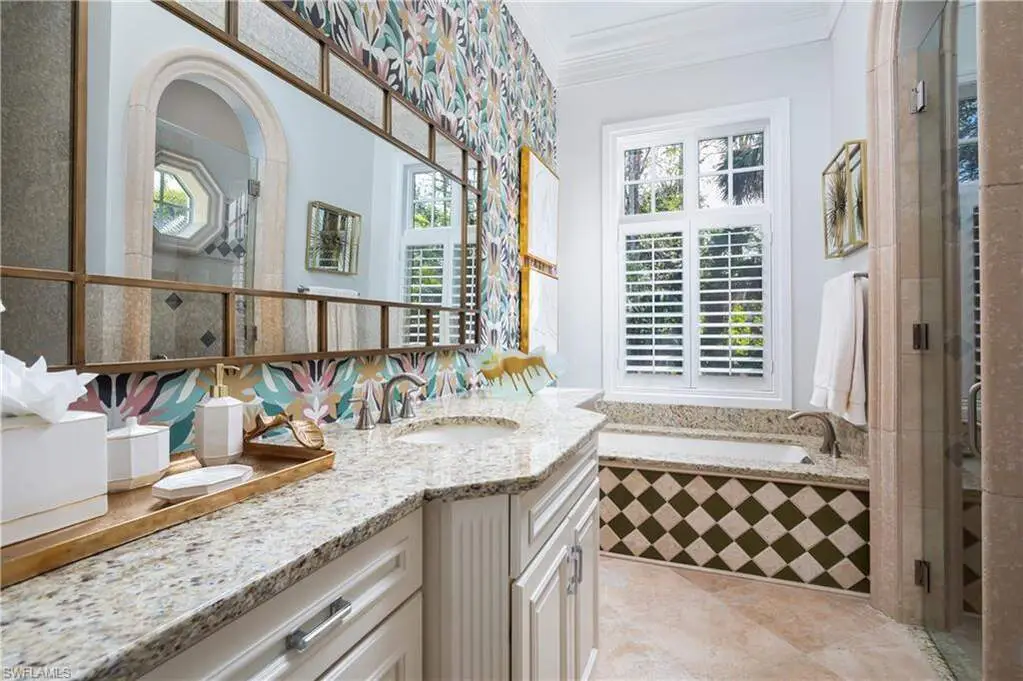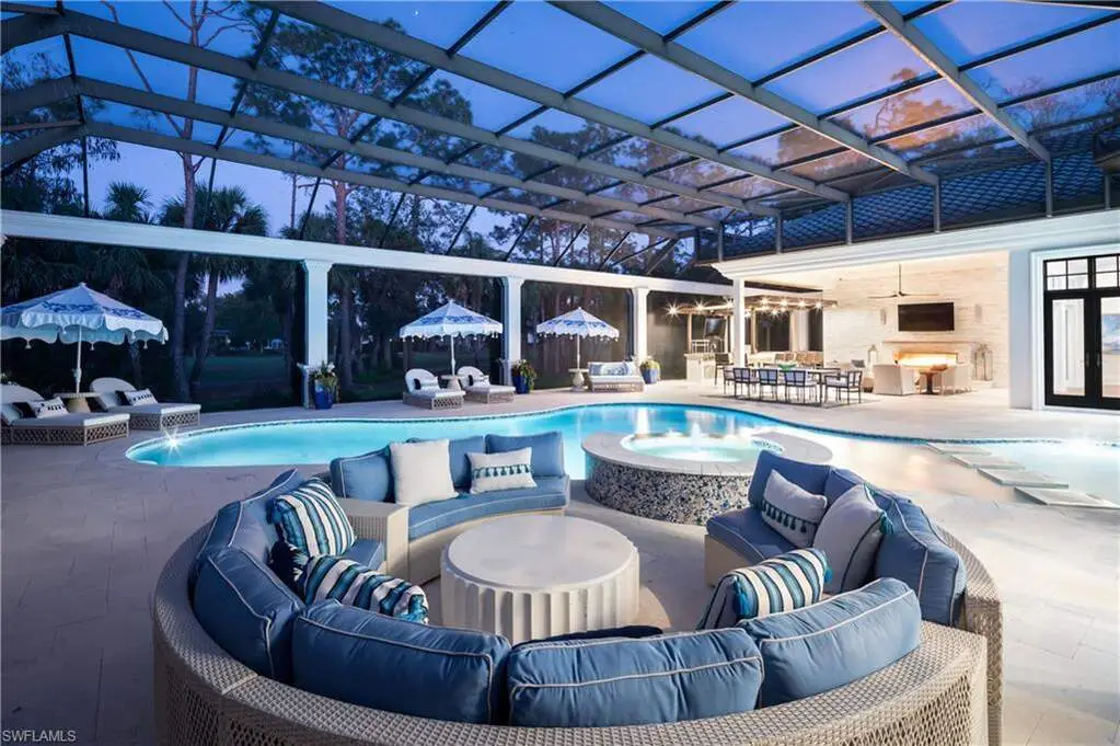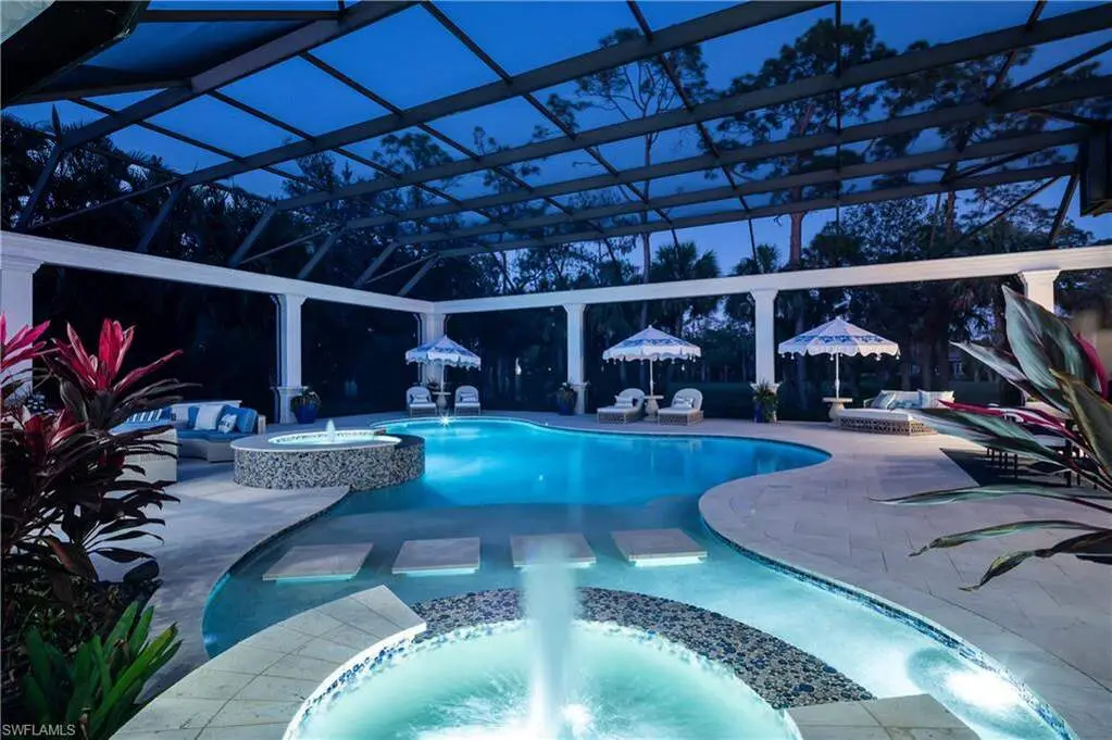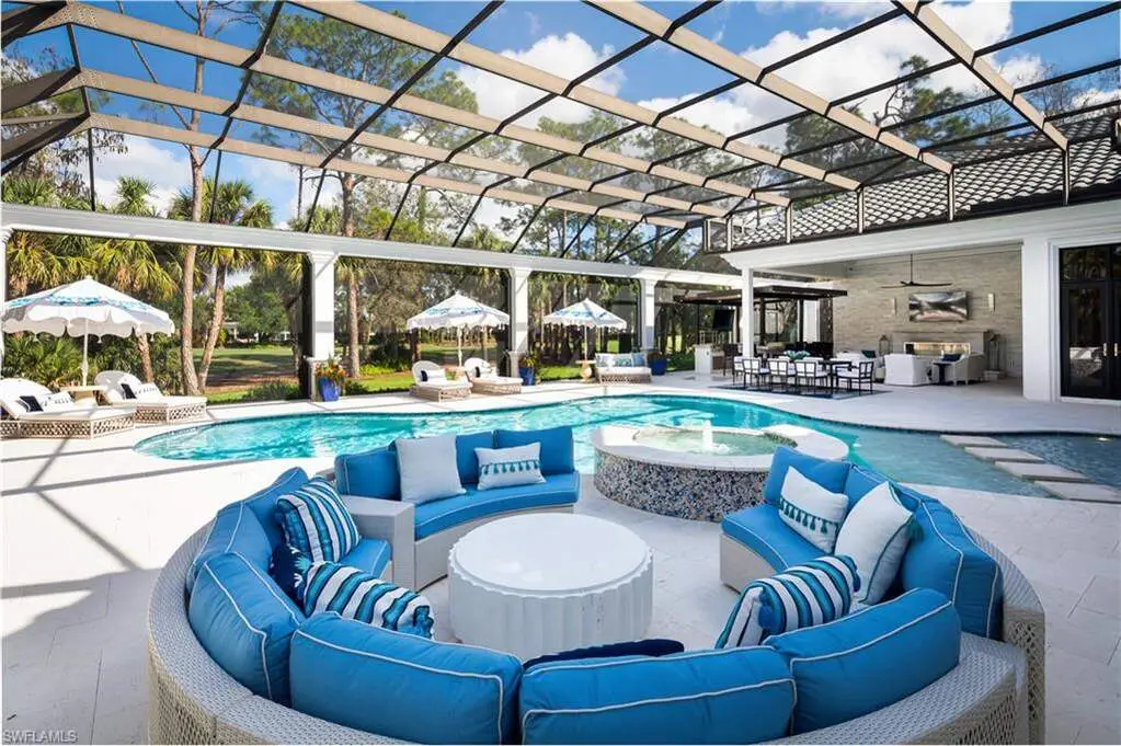 IMMEDIATE GOLF MEMBERSHIP AVAILABLE WITH THIS SALE (SKIP THE WAITLIST)! BUYER SAVES $180K ON GOLF INITIATION FEE BY TRANSFERRING SELLER'S GOLF MEMBERSHIP! Fully renovated, state-of-the-art estate situated in the highly sought-after Quail West community in Naples. This masterpiece sits on a nearly 1-acre lot with beautiful golf course views, a park-like setting & one of SWFL's finest outdoor entertainment areas with resort-style pool/spa, water features, state-of-the-art outdoor kitchen/bar & super screen picture window enclosure. Designed for ultimate enjoyment, the outdoor kitchen and bar offer seating for nine, featuring exquisite Taj Mahal granite, a grill, cooktop, burners, dishwasher, fridge, and a cocktail station. Inside, no detail has been overlooked, with European oak hardwood floors, & brand newly redesigned high-end furnishings & decor, custom designer wall coverings throughout, impressive distinctive light fixtures & luxurious custom draperies. Boasting 4,972 sq ft of living space, this home offers 4 spacious bedrooms, a spacious bar room with a 650 bottle wine wall (could also be converted back to a den), stunning formal dining room, a large laundry room with plenty of storage, and two 2.5-car garages with a motorized gate. Immaculately maintained, the property features hurricane impact windows, new hot water heaters, 3 new HVAC units (2022), 2 generators, a water filtration system, smart home automation with Lutron lighting, and a Sonos sound system. The chef's kitchen is a true culinary masterpiece, with pristine white cabinetry, high-end granite countertops, an oversized island, expansive walk-in pantry, and top-tier appliances, including a Thermador double oven, dual Viking dishwashers, Sub-Zero refrigerator drawers, Dacor microwave, and a Wolf gas cooktop with a hood. The primary suite serves as the perfect retreat, offering stunning views of the pool area and golf course. Its spa-like bathroom features dual vanities, a makeup vanity, a standalone soaking tub, and a luxurious frameless glass shower with a bench. Quail West is known for its world-class amenities, including two championship golf courses, a newly renovated 100,000 sq ft clubhouse, a Racquet Sports complex, an indoor lagoon-style Junior Olympic pool, a variety of dining options, a state-of-the-art fitness center, and a full-service salon and spa with a sauna. Just minutes from Barefoot Beach, Mercato, Waterside Shops, and Naples' iconic 5th Avenue, this prestigious community offers easy access to RSW and Naples airports.