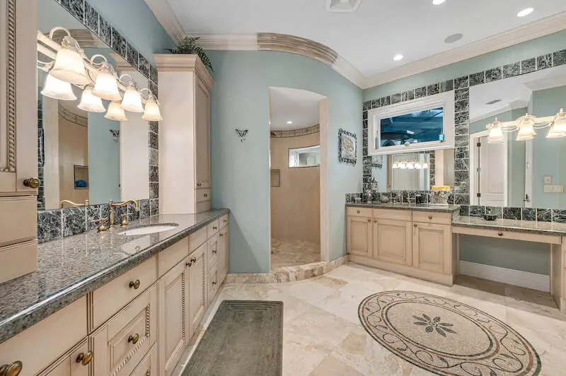 Enormous master suite with his/her baths