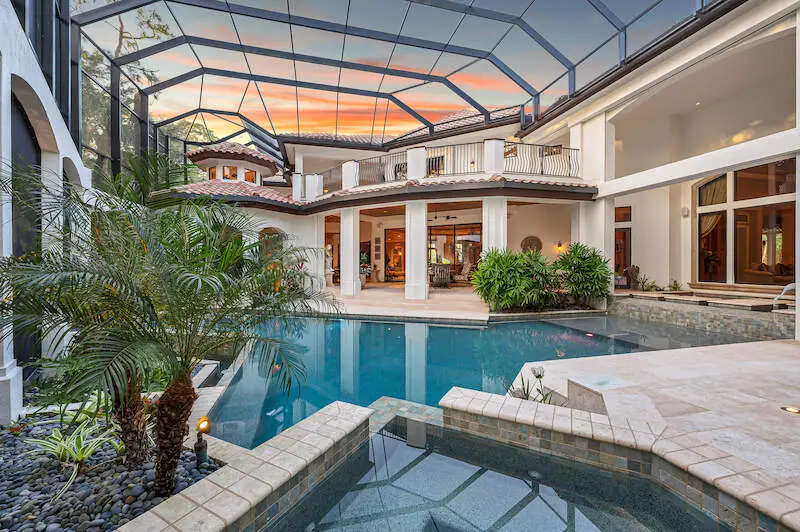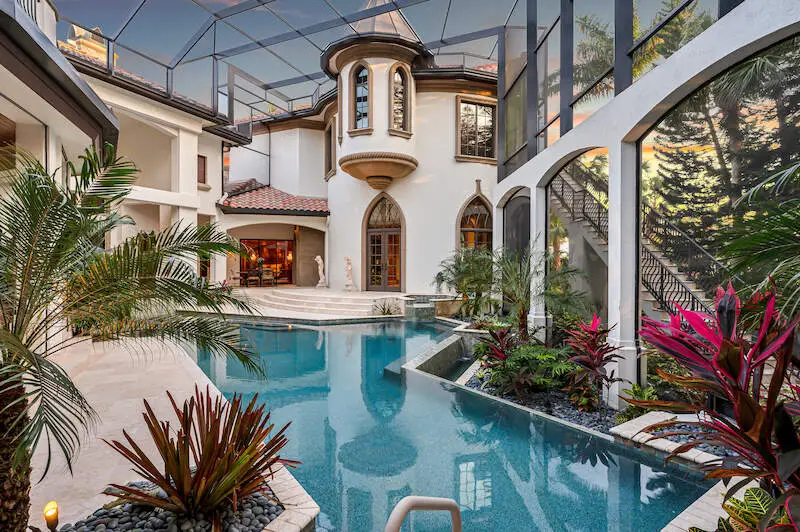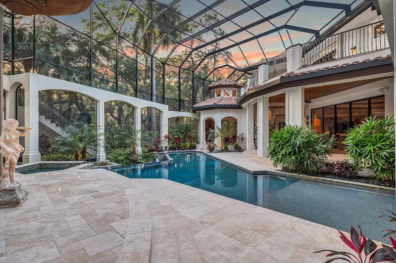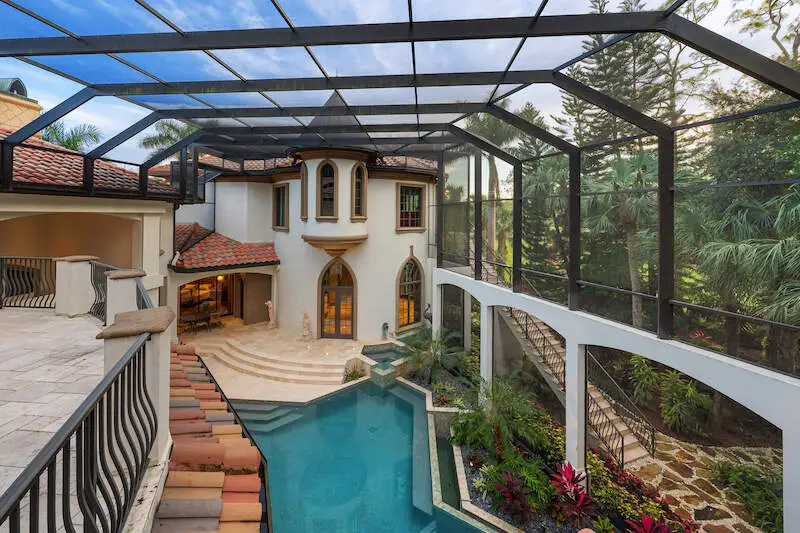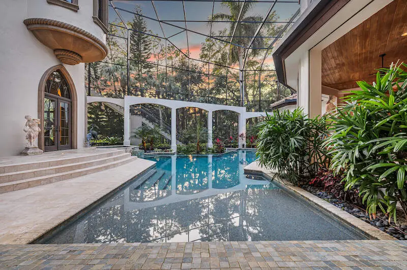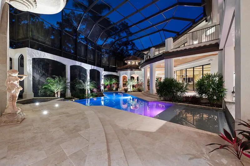 TRANSFERABLE GOLF MEMBERSHIP AVAILABLE! Timeless grandeur meets modern comfort in this iconic Quail West estate. The most used word in a tour of this elegant home is "WOW" and for a multitude of reasons: Almost 12,000sf includes a one-bedroom apartment wing equipped with a premium kitchen and great room plus elevator or stair access. The enormous master with his/her baths, bespoke closets, sitting area with breakfast bar and a safe room is an enclave in itself. Constantly and thoughtfully updated under the visionary eye of premier builder, Tony Palladino, the owners have tailored every room to reflect the splendor of the home with customized, handmade trim work, ceiling features and many small but extraordinary touches that delight the senses at every turn. Formal and informal spaces abound from two theatre rooms (one is 18-seat state-of-the-art Hollywood-style) to a gallery-sized fitness room, wet bar, card room and more. The expansive dream kitchen features a huge granite island, gas stove with a view and a welcoming aura that extends to the spacious great room. The spacious and sunny lanai features multiple seating areas, a well-equipped outdoor kitchen, spa and custom pool. While the spectacular landscaping sets the scene, the unseen amenities are unrivaled: independent water system and water filtration/reverse osmosis system, 86kw commercial generator, two elevators, security/cameras, gated courtyard, five cars plus golf cart garages with gated courtyard and so much more.