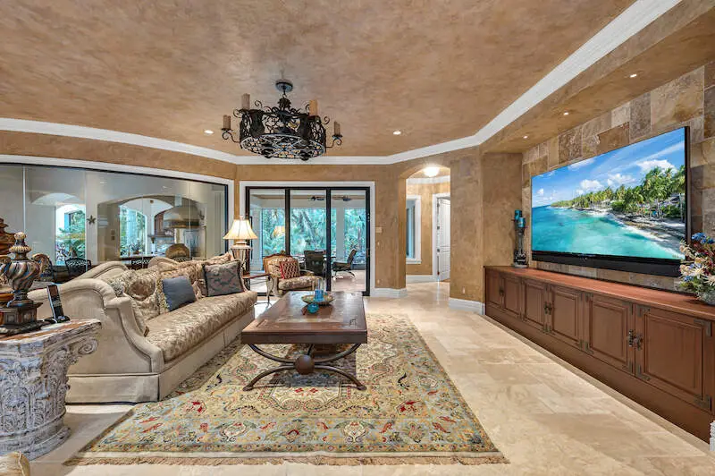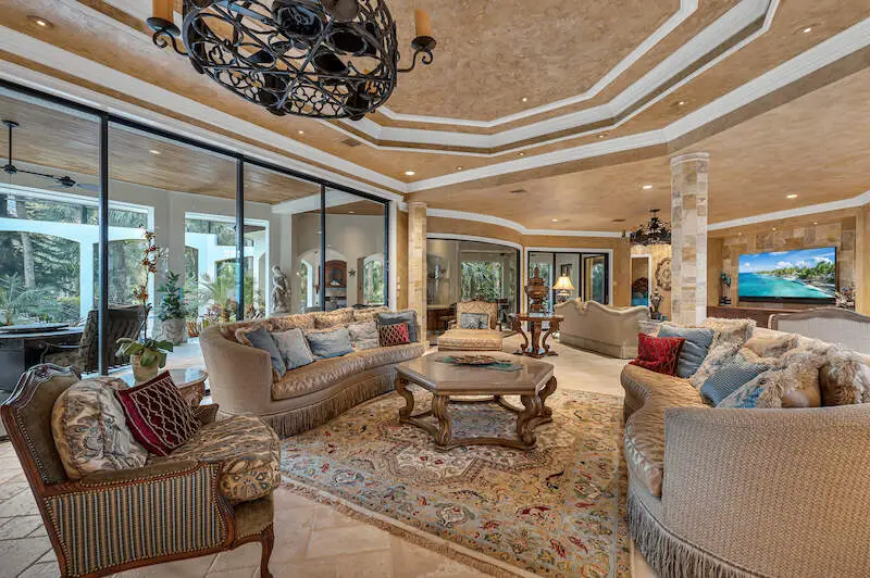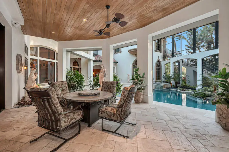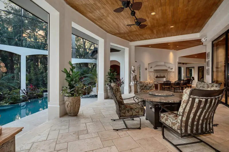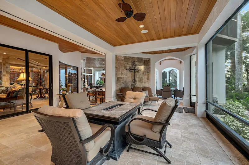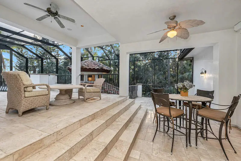 Multiple seating areas on sunny lanai