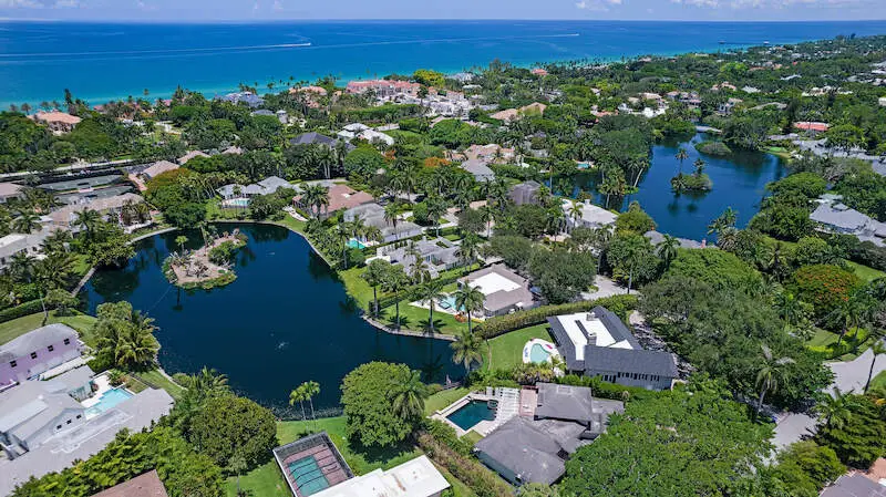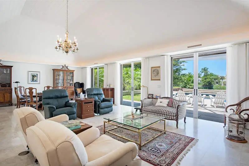 H6474-HIGH AND DRY. Enveloped by mature trees and nestled on the serene Half Moon Lake, this idyllic, nearly 24,000 sq. ft., Port Royal parcel makes it easy to imagine the number of possibilities for a newly constructed residence with tranquil outdoor living. Currently nestled on the parcel is a well-cared for home crafted by renowned architect Kasimir Korybut that allows for comfortable living for those wanting to build while plans are solidified. The main level includes a spacious living areas, two en-suite bedrooms with lake views, a half bath and a custom kitchen. Floor-to-ceiling sliders open to extend your living to the outdoors, where residents are able to enjoy the copious amounts of varied wildlife, as well as enjoy a luxurious saltwater pool / spa, outdoor shower, and kitchen. By means of a spiral staircase, the second level consists of a spacious bedroom toting sliders that open to a private balcony, as well as a lavish bathroom. Auto enthusiasts will delight in having a fully tiled, air-conditioned garage with plenty of space. Port Royal is a world-class community with close proximity to all that Naples has to offer including sugar sand beaches, shopping, & dining.