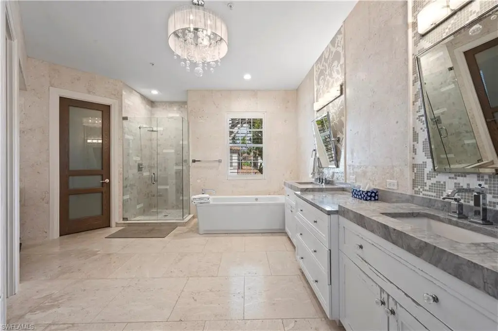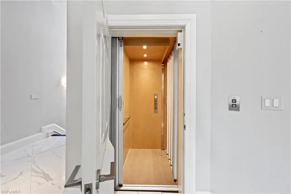This impeccably modern second-floor retreat in the prestigious Colonnade of Park Shore redefines Naples luxury living. Spanning almost 2,500 square feet, this residence features a soaring double-height entry, a private elevator, a dedicated garage, and a generous screened lanai with automated storm shutters. Every inch exudes refined elegance and meticulous attention to detail. Inside, discover sophisticated touches, with built in bar, polished marble flooring throughout the living areas and primary suite, crisp paint, custom crown moldings, and sleek marble countertops in the gourmet kitchen and spa-inspired bathrooms. Enhanced with bespoke cabinetry, frameless glass showers, a decadent soaking tub in the primary bath, coffered ceilings, and stylish blinds, the home radiates modern luxury. Solid-core 10ft doors with etched glass panels and advanced ambient lighting complete the elevated aesthetic. Enjoy the large outdoor lanai with a spacious patio perfect for your morning coffee or evening beverage. Additional features to this home include an attached garage for your convenience with a private elevator to the main level.The ColonnadeÆs exclusive amenities include a vibrant social lounge with a catering kitchen, grill area, a sparkling pool, and a relaxing spa.The Colannade, a pet-friendly community, also offers a library, and fitness studio. Conveniently located steps to the beautiful shops and varied dining options in Venetian Village, and the sugar sand beaches of the Gulf, this home offers the epitome of upscale Florida living. Private access to Park Shore Beach. Indulge in world-class Naples sunsets, dining, and shopping. Don't miss the opportunity to make this exquisite property your new home.