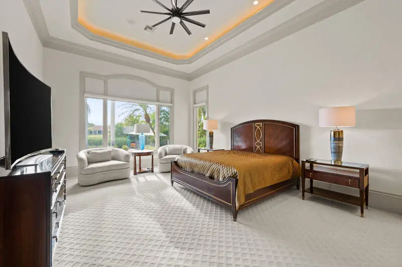 TRANSFERABLE GOLF MEMBERSHIP AVAILABLE! Skip the waitlist and pay only a transfer fee! Ideally situated in the prestigious community of Quail West, this impressive residence offers a thoughtful floor plan complemented by expansive outdoor living spaces including a screened lanai and spectacular golf and sunset views. The luxurious primary suite is uniquely designed with dual en suite bathrooms connected by a shared sitting area creating a tranquil retreat of privacy and comfort. Three additional guest suites offer plenty of space for visitors too. Perfect for entertaining, the open-concept great room flows seamlessly into the chef-inspired kitchen, which features an oversized island, breakfast bar, dual prep sinks, and a walk-in butler's pantry complete with a beverage refrigerator. From terrazzo flooring and tray ceilings to a cozy fireplace and dramatic floor-to-ceiling windows, every detail of this home speaks of refined elegance. The screened lanai includes a covered seating area with an outdoor kitchen, and the custom pool-with integrated spa and sun shelf-is strategically positioned to maximize sun throughout the day. The spacious three-car garage provides ample room for vehicles, a golf cart, and all your Florida lifestyle essentials.