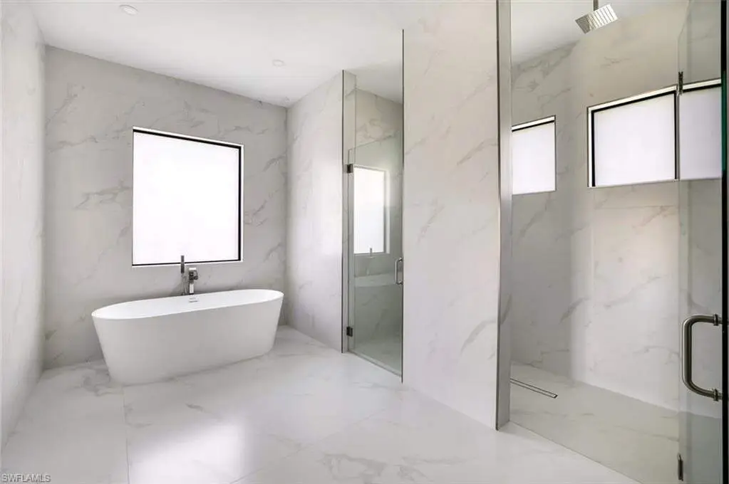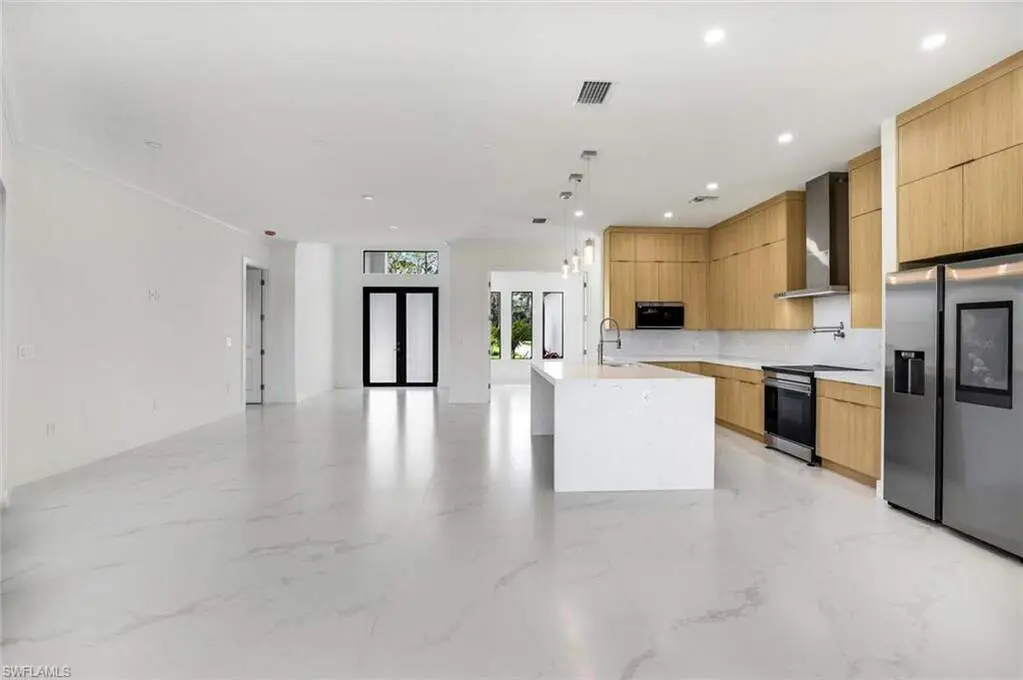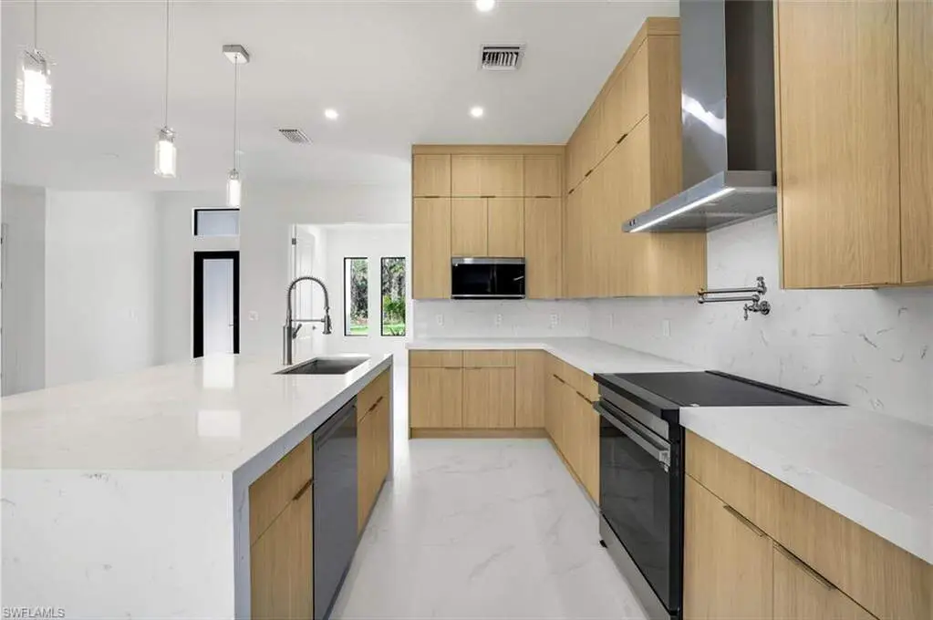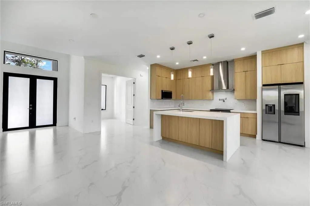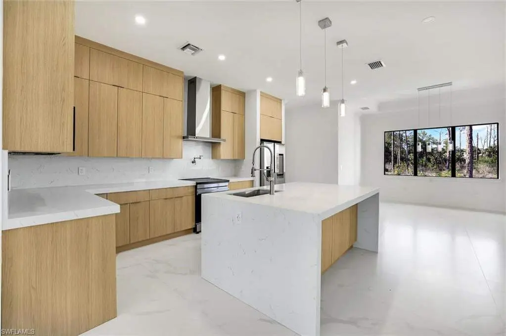 Introducing a brand new, luxurious construction home nestled on a 100% uplands lot in one of the most desirable up-and-coming streets-surrounded by stunning new builds and upscale homes. This is a rare opportunity to own in a neighborhood quickly transforming into one of the most beautiful areas in town. Set back over 200 feet from the road, this elegant home offers both privacy and sophistication, all just five minutes from the nearest supermarket and everyday conveniences. Built with quality and longevity in mind, the home features impact-resistant doors and windows throughout, offering added safety, energy efficiency, and peace of mind. A whole-home reverse osmosis water filtration system ensures the highest standard of water purity for you and your family.The chef-inspired kitchen is a showstopper, with ceiling-height cabinetry, Samsung stainless steel appliances, a quartz waterfall island, a convenient pot filler, and a sleek designer range hood. Inside, gorgeous 48" x 48" porcelain tile flows throughout, creating a bold yet refined modern feel. The spacious primary suite offers a serene escape, while the luxurious master bathroom showcases floor-to-ceiling tiled walls, a dual-sided shower, and a separate soaking tub for ultimate relaxation. Every bedroom includes closet shelving systems for thoughtful organization and function. Experience a rare combination of location, quality, and design - perfect for buyers seeking style, space, and a truly move-in ready home.