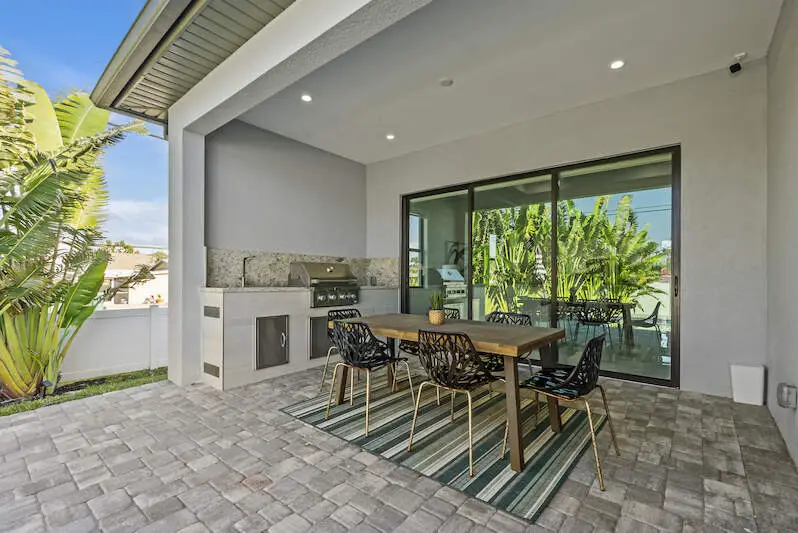 Minutes to Vanderbilt Beach and the Ritz Carlton, welcome to 799 108th Ave N, a stunning home in the highly sought-after Naples Park, ideal for full-time living, a vacation retreat, or a lucrative investment property like Airbnb. This 4-bedroom, 3-bathroom pool home offers a fantastic combination of luxury and convenience. Professionally furnished, this modern gem features an open-concept floor plan with high ceilings, crown molding, and a sleek tile roof. The gourmet kitchen boasts 42" white wood cabinets, a large dine-at island with Quartz countertops, stainless steel appliances, and a hooded range that flows seamlessly into the spacious living area with coffered tray ceilings and large paneled sliding doors. Step outside to enjoy the expansive lanai, complete with an outdoor kitchen and built-in BBQ, perfect for entertaining. The private, fenced-in pool adds a touch of relaxation. The primary suite is a true retreat, with a walk-in shower, freestanding soaking tub, dual vanity, and a generous walk-in closet with an organizing system. Just 5 minutes from Naples' stunning beaches, Mercato shopping and dining, and the newly updated Pavilion shopping center, you can easily drive, walk, or bike to all the best local attractions. Don't miss the opportunity to own this incredible property in one of Naples' most desirable neighborhoods!