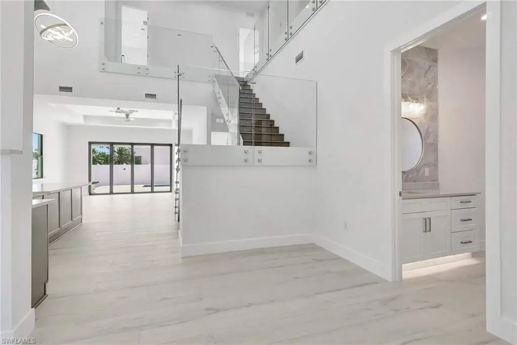 Discover Luxury living in this newly constructed two-story residence nestled on a prestigious corner lot on the 500 block in Naples Park. Just one block from the Gulf, this exquisite home offers unparalleled convenience and coastal living at its finest. The property boasts remarkable outdoor spaces, including a stunning pool with a sun shelf, an outdoor grill, and a dedicated pool bathroom, perfect for entertaining and relaxation. Inside, the home is bathed in natural light and features amotion-sensored lighted staircase with a gorgeous glass railing leading to two additional bedrooms, two full baths and an upstairs bonus room. This architectural masterpiece combines modern elegance with thoughtful design, making it a rare find in a coveted location. Some of these photos have been virtually staged.
