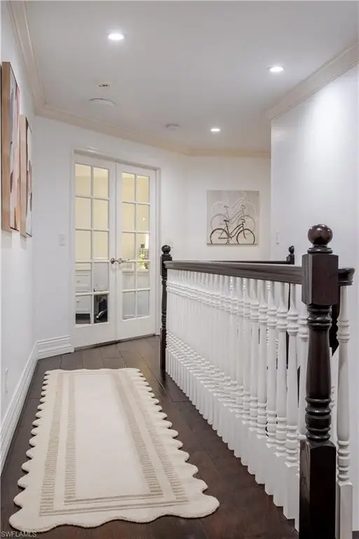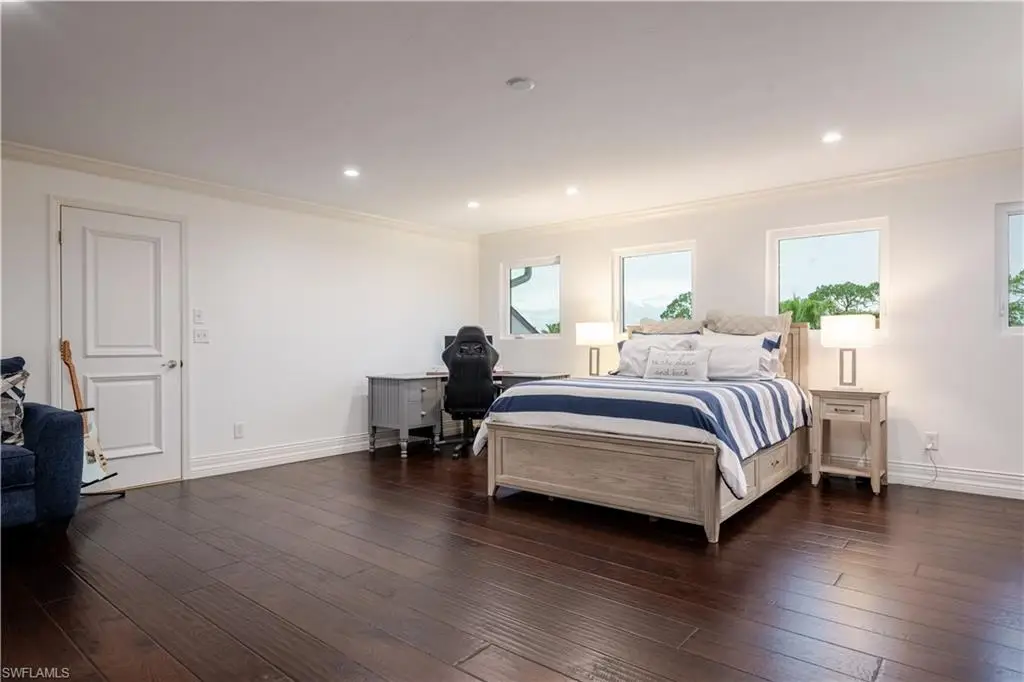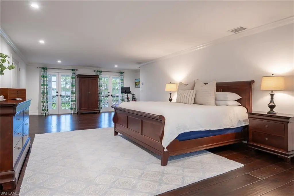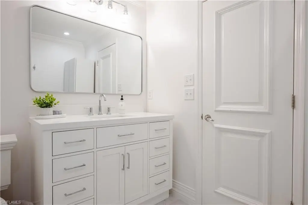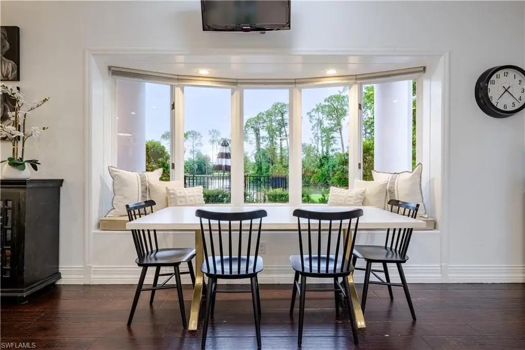 Welcome to an extraordinary residence - a masterfully renovated Classic Southern Plantation House infused with modern elegance and Florida charm. Ideally positioned just minutes from the vibrant dining, shopping, and entertainment of North Naples, this home offers unrivaled convenience and sophistication. From its majestic facade, the expansive front porch and balcony provide seamless outdoor living space, matching the rear structures that overlook exquisite views of the pool, the lake, and a lush golf course. The interior boasts a sophisticated foyer with a dramatic staircase and mezzanine, setting the stage for effortless entertaining alongside an exquisitely decorated bar, a chic living room, and a luxurious yet welcoming dining room. Gourmet chefs will delight in the no-expense-spared kitchen flaunting high-end features such as B&B Custom Cabinetry, dual islands, a farm sink, White Carrara marble countertops, a Thermador range, Vent A Hood range hood, a Sub-Zero integrated refrigerator, plus two under-counter refrigerator drawers and a beverage center, while preserving stunning original elements. Elevate to the master suite spanning 1,300 sq ft, where a reimagined master bath and a coveted closet await behind elegantly framed French doors that open to the front and rear balconies for panoramic vistas. On the third floor, guest quarters promise privacy and spacious accommodations. Experience timeless elegance and modern living in a location that offers everything at your doorstep. Indulge in this remarkable listing today!