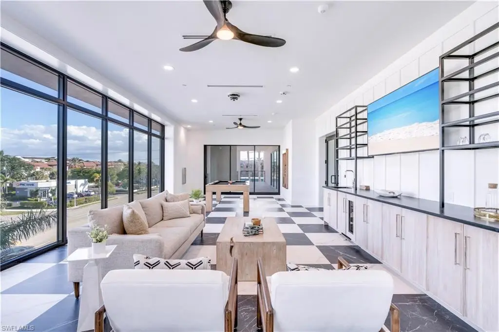 Step into modern coastal luxury with Residence 205 at Stella Naples, a brand-new, impeccably designed condo in one of NaplesÆ most exclusive boutique developments. The Aria floorplan spans 2,131 square feet of refined living space, featuring two spacious bedroomsùeach with its own en suite bathùand a private rooftop deck suite that sets this home apart. Seamlessly blending indoor and outdoor living, the expansive western-facing lanai opens just off the living room, capturing golden afternoon light and providing the perfect setting to relax or entertain. Inside, no detail has been overlooked. Enjoy wide-plank European white oak floors, custom Ruffino cabinetry, Cambria quartz countertops, and curated designer finishes throughoutùfrom hardware and faucets to LED-integrated lighting and indoor/outdoor fireplaces. Motorized window coverings, solid core doors, and a premium appliance package add convenience and elegance. With two covered garage parking spots, a private storage room, and only nine total residences in this exclusive 2024 development, Stella offers the ultimate in privacy and sophisticationùjust a short stroll from Fifth Avenue South and the white sands of the Gulf. Whether you're seeking a serene retreat or an entertainerÆs paradise, Residence 205 delivers the pinnacle of Naples luxury living. Come experience what makes this award-winning community truly exceptional.
