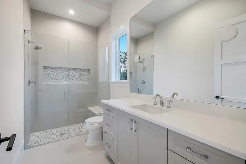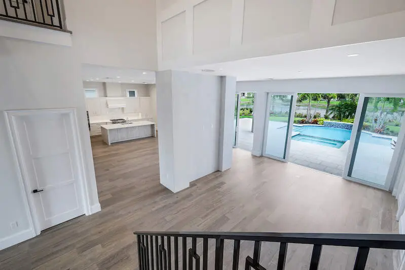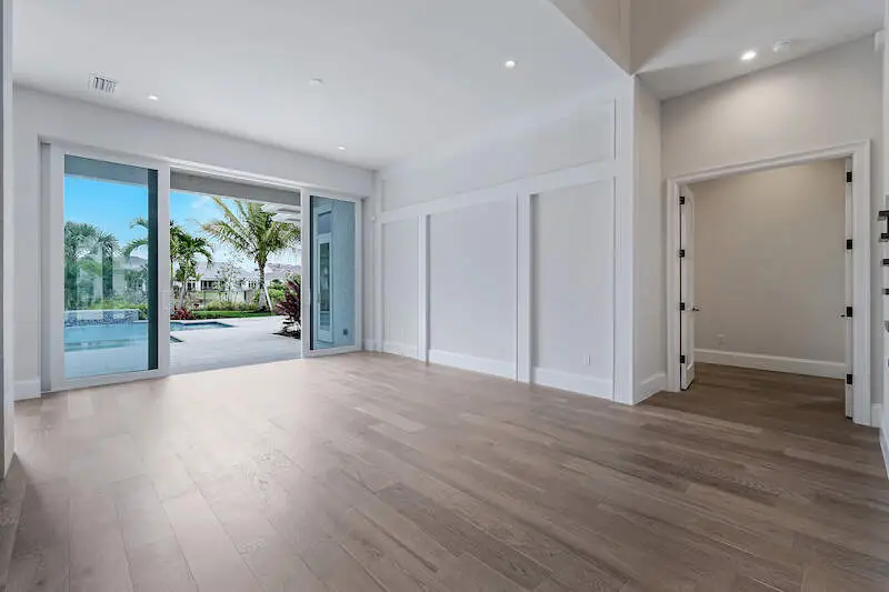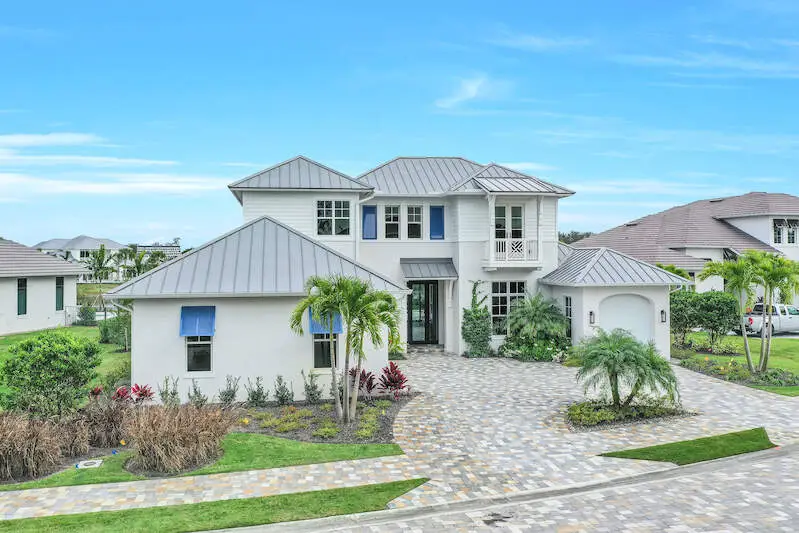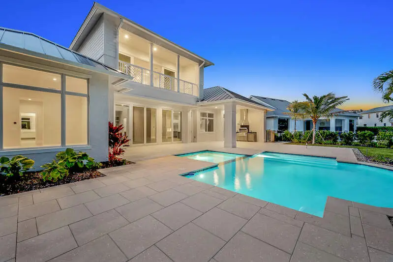 New construction, completed November 2023. The oasis is a four bedroom, den, and loft home with four bathrooms plus two half-baths. Built by Distinctive Communities in the gated North Naples community of The Enclave of Distinction. A private boutique neighborhood of 27 homes, the Oasis is situated on a beautiful SE homesite with a water view. This 4,869 square foot home boasts views as soon as you walk through the front door, through the living room, to the resort-style pool with an outdoor cook center and fire pit. The gourmet-inspired kitchen features Viking appliances, custom wood cabinetry, and Pompeii quartz countertops. It flows into the family room, accented with a gas fireplace. The main suite on the first floor features volume ceilings, a private sitting area, a luxurious bathroom with a freestanding soaking tub, a walk-in shower, dual vanities, and two oversized walk-in closets. Also located on the first floor is a den, en-suite guest bedroom, formal dining room, and butlers pantry. The second floor includes two on-suite guest rooms and a lounge/media room with an open balcony—minutes to shopping, gulf beaches, Mercato, SW FL International Airport, and fine dining.
