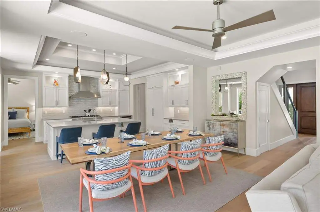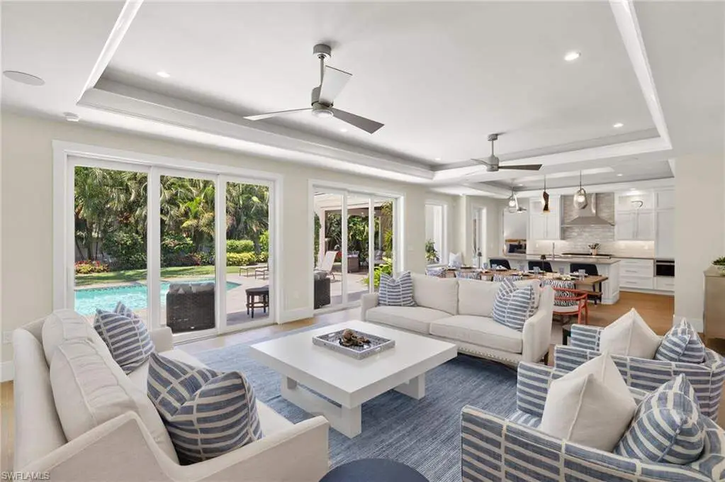 Welcome to 655 7th Avenue North in desirable Olde Naples location just a short walk to the beach and downtown. Enter this 4 Bedroom plus den/4.5 Bathroom newer construction house into a welcoming foyer opening to an expansive open-concept living floor. Spacious living room with wall of glass opening out to private rear yard seamlessly blending indoor/outdoor living. Lovely dining room complete with wet bar is ideal for entertaining. True chef's eat-in kitchen replete with Thermador appliances including 6-burner gas range, white shaker cabinetry and oversized quartz island. Master suite oasis overlooks private back yard, dual walk-in closets with custom built-ins and a spa-like bath with oversized walk-in shower, freestanding soaking tub, separate vanities and separate water closet. Guest suite with en-suite bathroom plus access to outdoor living space. Convenient first floor office ideal for today's work from home lifestyle plus full-sized laundry room and powder room. Ascend to the second floor to a light and airy loft-like sitting room with beverage center ideal for visiting guests. Two additional guest suites each with en-suite bath and walk-in closets complete this floor. Outdoor living space is truly a private sanctuary with a gorgeous pool and spa, sundeck, covered screened-in living/dining room with custom built-in outdoor kitchen ideal for year-round entertaining. Grassy area perfect for dog lovers and play. 3-car attached garage with epoxy floor. Easy walk to the gorgeous beach at the end of block and an easy walk, bike or golf cart ride to downtown Naples' 5th Avenue South and 3rd Street South renowned worldwide for its fine dining and shopping. Easy access to Naples and Fort Myers airport. Come enjoy the Naples lifestyle at this lovely in-town home.