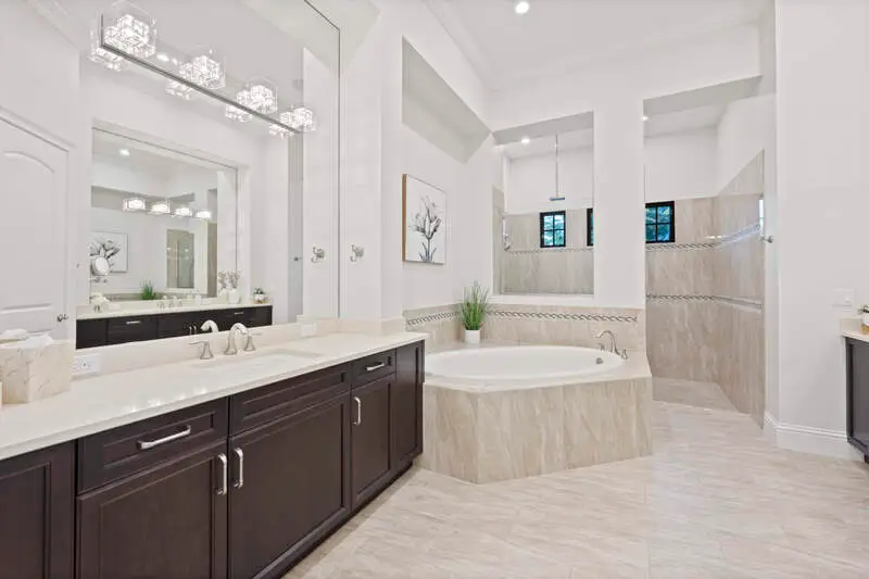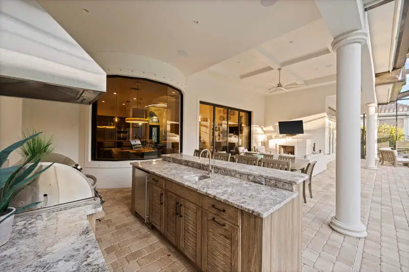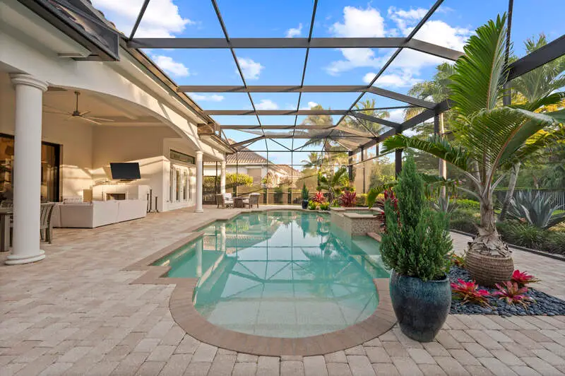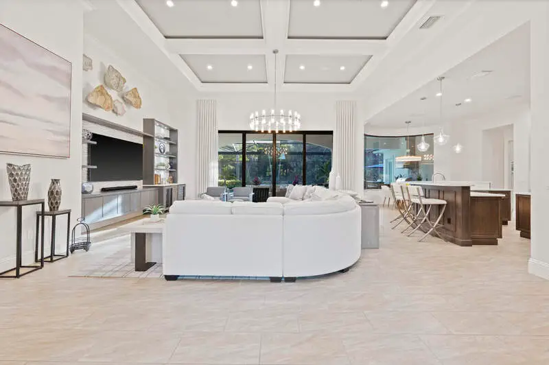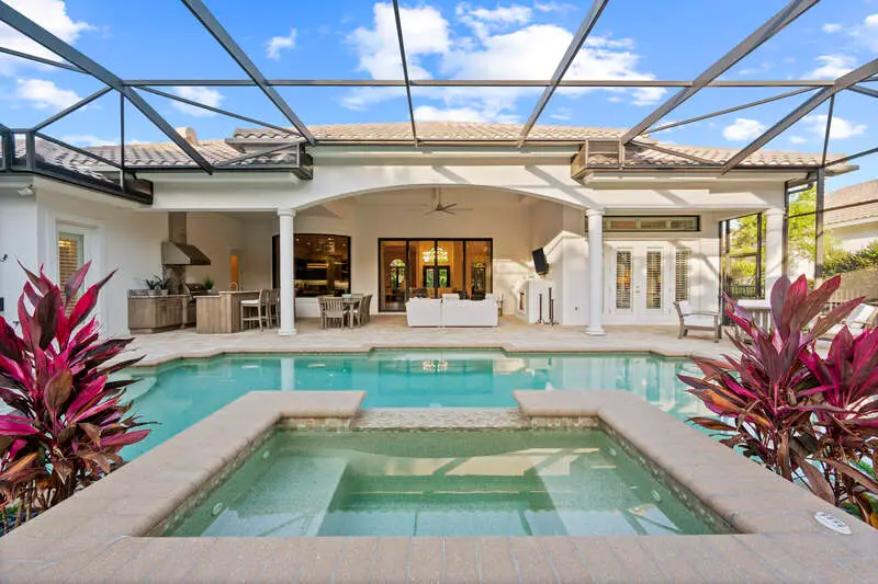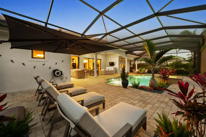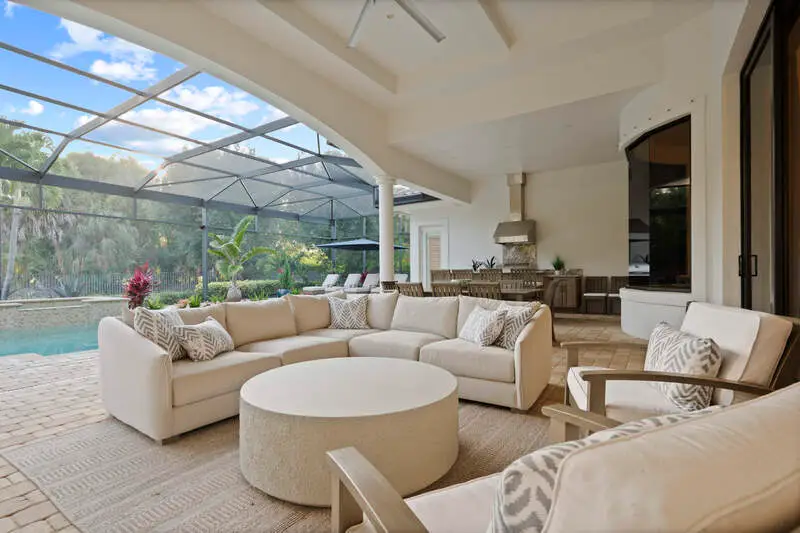 Experience the perfect blend of comfort and style in this newer yet freshly upgraded home thoughtfully inspired by Cardamom Design. Offering the most sought after southwest exposure, the screened lanai features various areas for relaxing, a full outdoor kitchen, built-in fireplace and inviting fire pit plus all-day sun and magnificent evening sunsets. The indoor/outdoor flow delights with a bright, open floor plan and premium finishes end to end- including a gourmet kitchen with upgraded appliances, newer countertops, custom cabinetry and wrap-around island for easy entertaining, a soaring great room with built-in tv wall and wine cooler and clever architectural touches throughout. The primary suite is a private oasis with a spa-like bath and generous walk-in closets while the overall floor plan flawlessly functions to allow privacy for owners and visitors alike. Dine al fresco or step inside to a separate dining room with built-ins or a casual breakfast area. Recently painted inside and out with many upgrades such as an air-conditioned 3-car garage with new built-in storage, Sonos sound system, custom closets and whole house generator, this home captivates at every turn.