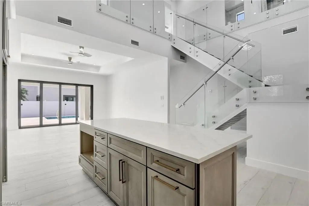 Discover Luxury living in this newly constructed two-story residence nestled on a prestigious corner lot on the 500 block in Naples Park. Just one block from the Gulf, this exquisite home offers unparalleled convenience and coastal living at its finest. The property boasts remarkable outdoor spaces, including a stunning pool with a sun shelf, an outdoor grill, and a dedicated pool bathroom, perfect for entertaining and relaxation. Inside, the home is bathed in natural light and features amotion-sensored lighted staircase with a gorgeous glass railing leading to two additional bedrooms, two full baths and an upstairs bonus room. This architectural masterpiece combines modern elegance with thoughtful design, making it a rare find in a coveted location. Some of these photos have been virtually staged.