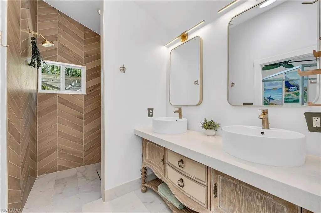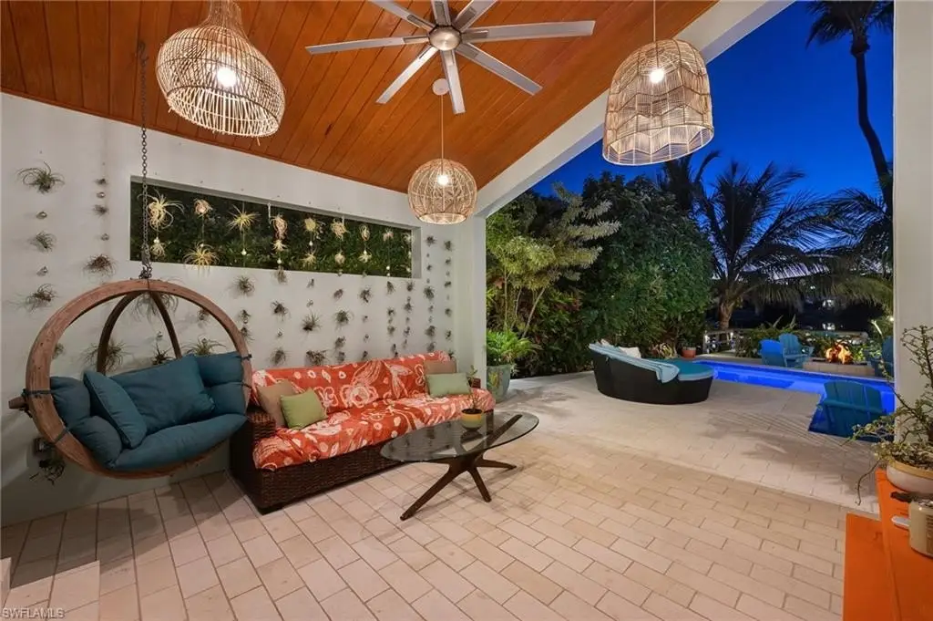 Completely rebuilt from the ground up in 2012 and then updated in 2025- Best location and view in Naples! "Old Florida in the Heart of Naples"- Amazing LAKE PARK setting- the hottest neighborhood in Naples! Less than 1 mile to the beach- 1.5 miles to 5th Avenue- West facing Sunsets every night over the lake in your backyard- Ultimate privacy in the middle of town- This home is unlike anything on the market! NO FLOOD insurance needed- LOMA done with FEMA- 11.2ft. above flood plane- NOT affected by any hurricane, the only thing original is the concrete block and yellow pine studs. Thoughtfully remodeled & brought up to today's luxury living ideals- Amazing tropical lush landscaping- Dock on the lake- Old Florida Keys Tiki Bar- Pool with sun shelf- Pergola- Grilling patio- Outdoor shower- Handicap accessible- Enphase Solar power- Huge garage- Tons of storage- 4 bedrooms on main floor, 3 with ensuite baths- 5th bedroom is a 600 sq. ft. loft/flex space upstairs with 1/2 bath (plumbed for shower option), currently a workout studio with sauna- Wonderful light- Dog run- This property has the tropical Caribbean feel you 've been missing in Florida. Enjoy coffee on the dock while watching the wildlife on the lake, pick fruit from your own mango, avocado, coconut, pineapple, banana, agave, & aloe plants, walk/bike to the beach and 5th Ave S, enjoy the world class shopping and dining of the Design District & Downtown Naples- for outdoor enjoyment walk over to Fleischman Park for pickleball or bike the Greenway to award winning Baker Park- Every possibility just a step from your new front door. Plumbing, electrical, & HVAC all updated throughout- Brought up to hurricane code- roofing trusses strapped- PGT Hurricane windows & doors- Metal roof by Kelly Roofing- New Navien tankless water heater- New Lennox AC system- 120 gallon propane tank