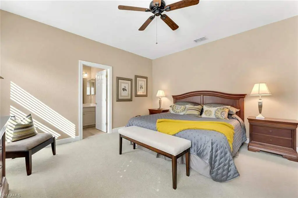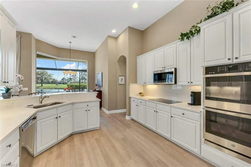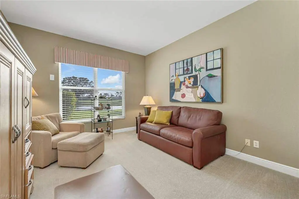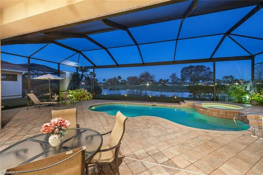 PRICE IMPROVEMENT on this Toll Brothers Sandpiper model on Cerromar Drive In Naples Lakes Country Club is now available to make it your own. Walk in through the double front doors to a 13' coffer ceiling great room, with a beautiful golf, and lake view of hole number 8. This spacious great room with sliding doors that pockets in, is facing east and fills the room with natural sunlight making it the perfect place to relax and enjoy the scenic serene life you always imagined having in the coveted Naples Lakes Country Club. This home has a split bedroom floor plan with 3 bedrooms, a den and 3 full baths. Primary suite with his and her walk in closets. Two additional generous size bedrooms, a den/office with solid French doors for privacy if needed for overflow of guests. Open kitchen design has been updated with quartz countertop, and stainless steel appliances. A mitered picture window breakfast area for your enjoyment. New roof and pool cage in 2019, new AC in 2021. So move right in and enjoy all of Naples Lakes Country Club has to offer from day one. Naples Lakes Country Club is a bundled golf course community, an Arnold Palmer signature golf course designed to challenge every level of players. A full golf and country club privileges with ownership of a home. Tru-Hard tennis courts, Bocce, out door dining at Arnie's, grill room and formal dining at the clubhouse. Many fun filled activities to keep you busy awaits. Naples Lakes Country Club is conveniently located to down town 5th Avenue, famous for shopping, restaurants, and Marco Island. Minutes away from Physicians Regional Hospital