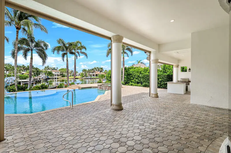 As you step into the formal living room, you're greeted by awe-inspiring water views framed by floor-to-ceiling windows, complemented by a cozy gas fireplace. Enjoy spectacular sunsets from your new residence in The Moorings, situated on .31 acres with southwest rear exposure on Compass Pass, where you'll find your boat dock with a lift that can accommodate a substantial-sized boat. Quick, direct Gulf access with one bridge is a boater's delight. Five bedrooms plus a den, a large bonus room, five and a half baths, as well as an oversized attached garage with a circular drive provide ample space for your car collection and street-legal golf cart. The generously sized family room, with pocketing sliding doors opening up to your amazing outdoor living space, will surely become a favorite spot for relaxing and enjoying time together. The sprawling master suite, with dual vanities, a jetted tub, walk-in shower, his-and-her custom closet systems, a separate library or den with beautiful French doors, and an additional first-floor en suite bedroom, offers ultimate comfort. Upstairs, you'll find three inviting bedrooms with custom closets and en suite baths, plus a pleasant bonus room with a wraparound balcony overlooking the fabulous pool and bay, perfect for a game room or media room. The grand gourmet kitchen, featuring a Thermador appliance package with a six-burner gas range and griddle, two dishwashers, a double wall oven, and a microwave drawer, is sure to excite any foodie. Dual Sub-Zero refrigeration, ample custom under-lit cabinetry with two islands, a fantastic oversized sink, and an ice maker make it perfect for entertaining. The impressive pool, with its expansive sundeck, jacuzzi, and summer kitchen, sits amid a beautifully landscaped, fully fenced backyard, ensuring privacy and security for your loved ones. Nestled on prestigious Mooring Line Drive, you're just moments away from Old Naples, the Venetian Village, Waterside Shops, and the exclusive Moorings private beach.