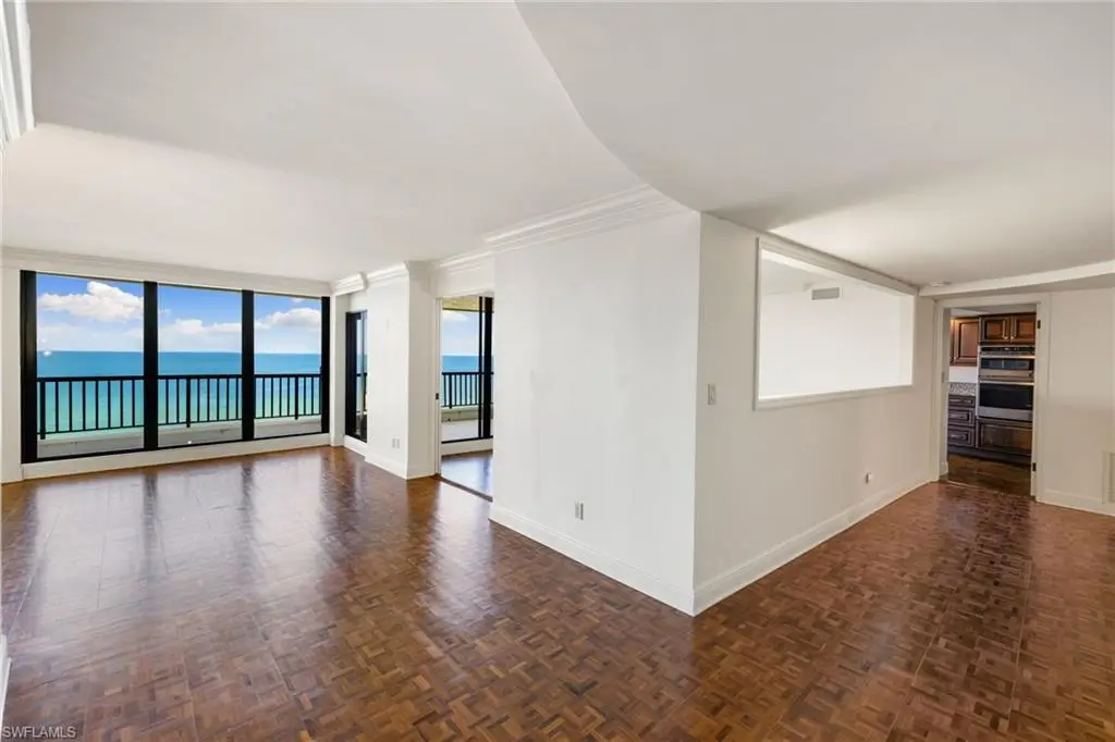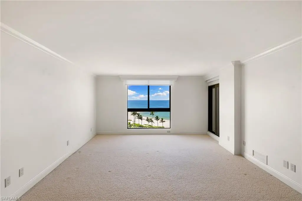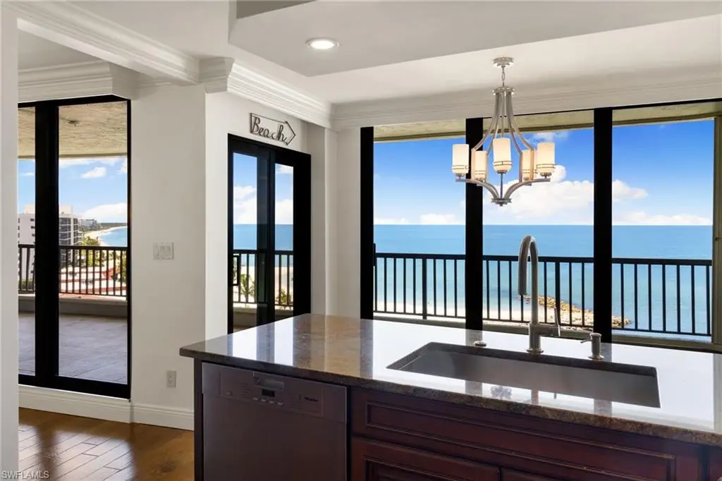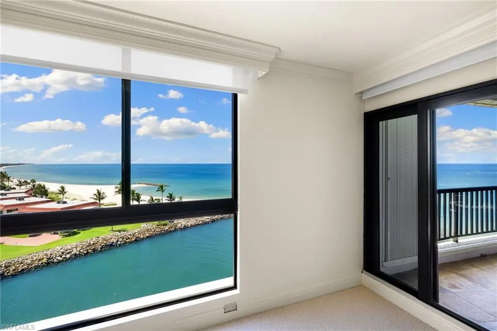 How's that lead off picture for a spot to have your morning coffee or tea to start your day?! VIEWS! Rare, sweeping, direct and full southern coastline views from all living areas and master suite, massive direct unobstructed Gulf views, long City views up Gulfshore Boulevard, direct views of Doctor’s Pass plus views to Moorings Bay from guest bedrooms and den. This residence is a beach-to-bay design, so you have southern, western, eastern and northern views and exposures. SIZE! Nearly 3,000 square feet of air-conditioned living space (was originally a four bedroom and can very easily be that again). LOCATION! At the end of the cul-de-sac with gated entry situated on nearly 10 acres of lushly manicured grounds with two pools, one renovated clubhouse area, and in recent years newly constructed grand clubhouse with fantastic workout facilities, boat docks and kayak storage / launch (subject to availability) - magnificent. Impact glass throughout for all windows and sliders plus extra storm protection from shutters on lanai and balcony areas. This type of residence is for all these reasons and more, authentically so very special, cannot be reproduced along Gulf Shore Boulevard, and offers tremendous value especially compared to the new construction residence costs along Gulf Shore Boulevard. Gorgeous beachfront. So close to any and all the every day-to-day conveniences and amenities you may need or want. This type of incredible setting is simply stunning particularly in a building that is so architecturally distinct in all the best ways. Come take a look and have a visit (it’s even better in person) - you may find your Naples beachfront residence awaits!
