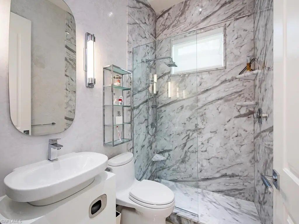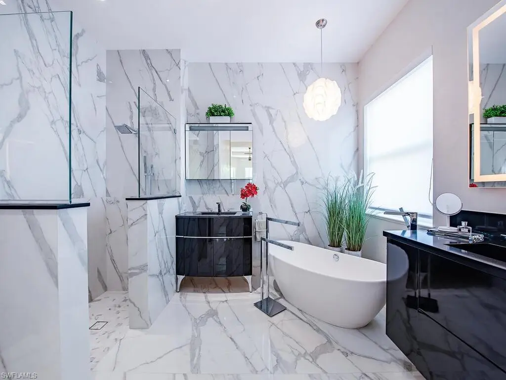 Contemporary Elegance Meets Comfort in This Exquisite Remodeled Home Fully reimagined in 2021, this stunning residence blends innovative design with modern sophistication. From the moment you arrive, youÆll be captivated by its fresh, contemporary curb appealùfeaturing a newer paver driveway, flat tile roof, and a striking high-impact front door. Step inside to discover an open, airy layout perfect for both everyday living and entertaining. The interior showcases marble flooring, soaring ceilings, and designer fixtures illuminated by sleek LED lighting. A stylish conversation area includes a built-in bar and wine coolerùideal for hosting guests. The heart of the home is a custom German-designed kitchen, complete with double slab quartzite waterfall island, Miele induction cooktop, and Bosch dishwasher. The family/living room features a cozy fireplace, creating a warm and inviting atmosphere. Retreat to the luxurious primary suite with rich wood floors, suede-lined custom closets, soft-textured accent wall, and remote-control window shades. The spa-inspired bath boasts high-gloss cabinetry, a soaking tub, expansive walk-in shower, and elegant 4Æ x 4Æ porcelain tiles. Additional features include: Two guest bedrooms with high-end Murphy beds Dedicated office with double French pocket doors Screened lanai with private poolùperfect for outdoor relaxation Epoxy marble-finished garage floor with built-in storage and workbench Located in a peaceful gated community, this home offers the perfect blend of privacy and convenienceùjust minutes from beaches, 5th Ave S, shopping, hospitals, schools, and fine dining.
