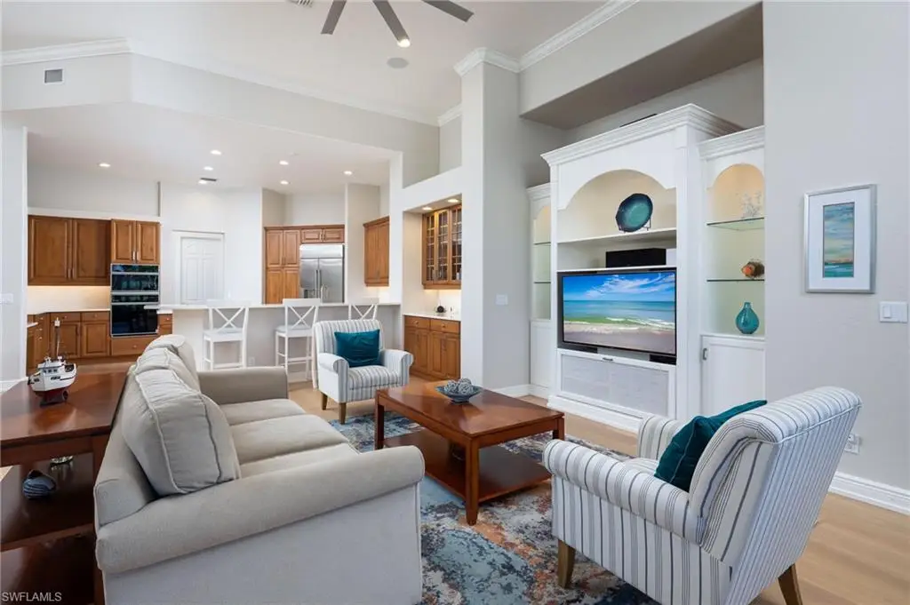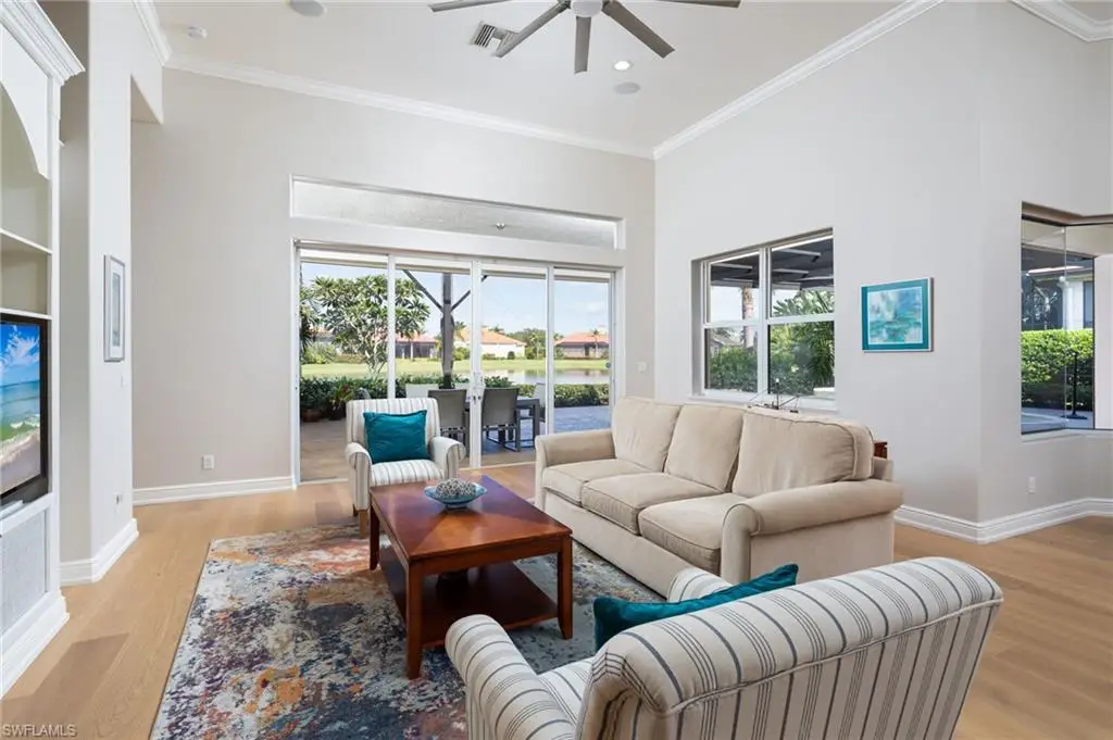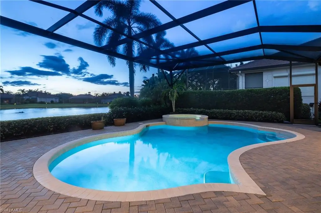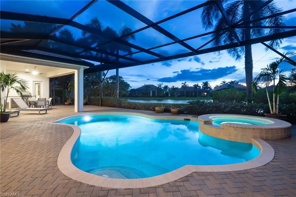Step into an exceptional expression of luxury living within one of North NaplesÆ most sought-after country club communities. This meticulously renovated estate spans over 3,700 square feet of thoughtfully designed interiors, blending timeless architecture with the convenience of modern technology. Every element has been curated with precision between 2021 and 2025. The home showcases reimagined indoor and outdoor kitchens with premium appliances, quartz and granite finishes, and under-cabinet lighting. Flooring transitions seamlessly from rich hardwood in living areas to soft carpeting in bedrooms and elegant tile in baths. All bathrooms have been retiled with updated sinks, fixtures, and His-and-Her primary suites. Enhanced lighting, plantation shutters, and a custom entertainment center elevate everyday living. Impact-resistant windows and doors, wind-rated garage systems, new HVAC, water heaters, and roof with gutters ensure peace of mind. Smart-phone integration allows effortless control of appliances, HVAC, pool, security, and storm shadesùunderscoring a lifestyle defined by both sophistication and ease. The screened lanai frames a resort-style pool and spa with new enclosure and equipment, offering a serene backdrop of lake views and dramatic sunsets. Beyond the residence, The Vineyards delivers an unmatched resort lifestyle. Homeowners enjoy the security of gated privacy and the natural beauty of manicured lakes, lush landscaping, and winding paths. Steps away, the communityÆs country club presents championship golf, tennis, pickleball, a state-of-the-art fitness center, resort pools, and vibrant social programming. Nearby, NaplesÆ world-class beaches, dining, theaters, and upscale shopping complete the experience. A rare opportunity to own a property where every detail has been consideredùthis home represents the perfect balance of luxury, lifestyle, and lasting value.