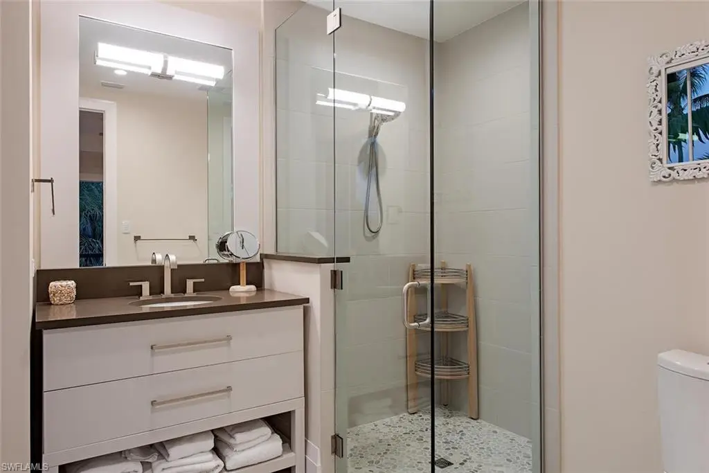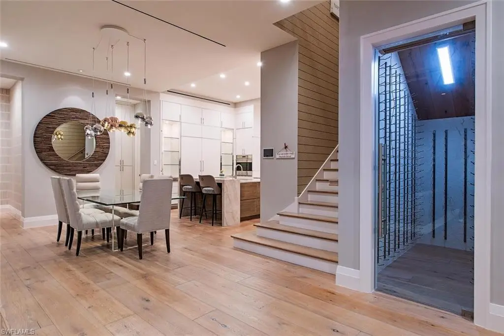Just 70 steps from the Gulf of America and an effortless stroll to both Third Street South and Fifth Avenue South, this 2018áStofft Cooneyûdesignedábeach-block residence captures timeless architecture, exceptional craftsmanship, and an unmatched location. Spanning over 4,450 square feet of air-conditioned living, the home features five bedrooms plus a study (optional sixth), an upper-level lounge with dry bar, temperature-controlled wine room, and three-car garage. Refined interiors showcase wide-plank oak flooring, Ruffino cabinetry, Taj Mahal quartzite surfaces, Sub-Zero/Wolf appliances, elevator, and Control 4 home automation with integrated sound and security. The outdoor living experience is equally impressive with a heated pool accented by water bowls, full summer kitchen, automatic screens and shutters, and lush tropical landscaping for privacy. Built of solid concrete construction and elevated at 12 feet, the home sustainedáno flood damageáin recent storm events, ensuring peace of mind. Furnishings are available and this exceptional property represents one of the most desirable opportunities in the heart of Old Naples.