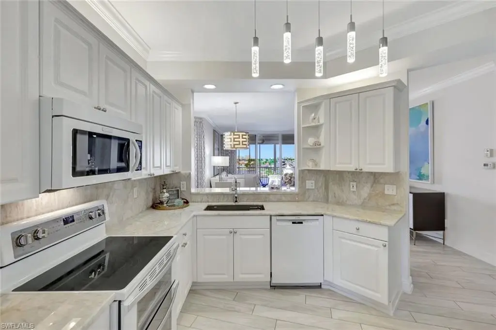 Experience true coastal elegance on the bay in this luxurious 5th-floor corner residence, where stunning panoramic bay views greet you the moment you walk through the door. Bathed in natural light from windows on three sides, the home captures sweeping water and city vistas that shimmer from sunrise to sunset. The interior palette mirrors the surrounding sand, water, and sky, creating a seamless connection between indoors and out. Just a short stroll to the beachùand offering direct Gulf access by boatùthis location is ideal for both beach lovers and boating enthusiasts. The spacious 3-bedroom + den, 2.5-bath layout features a thoughtful split-bedroom design for exceptional privacy. Wood-look tile flooring, refined crown molding, and soft coastal-inspired finishes enhance the serene and sophisticated atmosphere perfectly suited to its bayfront setting. Outfitted with high-end furnishings, new appliances and fresh interior paint, the residence is move-in ready. A boat slip (35X14) w/ 16,000lb lift is available for separate purchase, and the condo includes a dedicated parking stall and private storage closetùvaluable bonuses not available with every residence. Regatta at Vanderbilt Beach is nearing completion of a remarkable community-wide renovation, including a new roof, modernized pool deck, and refreshed entertainment areasùall expected to be finished by year-end. Residents enjoy resort-style amenities such as a tropical waterfall lagoon pool, spas, a well-equipped fitness center, boat docks, and a gazebo grilling area, all within the security of a gated community. With pet-friendly policies and weekly rental flexibility, Regatta offers an exceptional opportunity for both personal enjoyment and investment. Regatta boasts an exceptional location, just steps from the beach for sun-soaked days, swimming, or exciting water sports. A short stroll brings you to the Ritz-CarltonÆs Gumbo Limbo, one of the best spots in the area to catch a breathtaking sunset. Popular dining destinations like Turtle Club, BuzzÆs Lighthouse, and LaPlaya are all nearby. Just up the street, enjoy 20 new pickleball courts and Mercato, a vibrant hub featuring restaurants, shops, a movie theater, and lively nightlife. This is a rare opportunity to live by the beach while being close to everything Naples has to offer.
