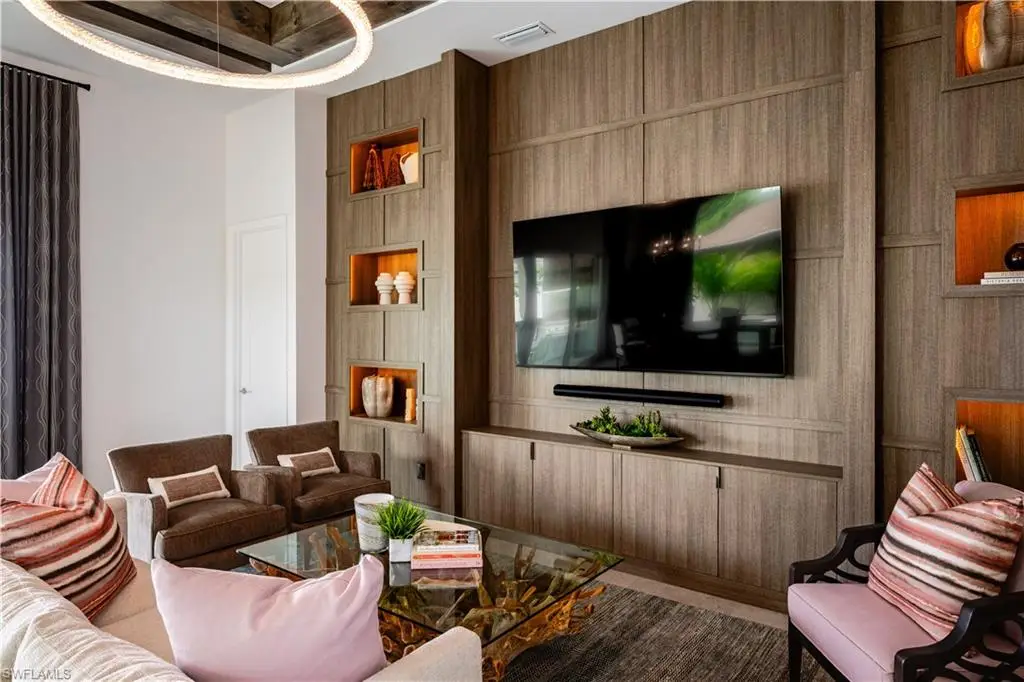 New construction home designed and curated with a contemporary theme with coastal flair by Clive Daniel, built by LaGrasta Homes, located just moments from the serene Naples beaches, presents refined living with its custom, open floor plan that effortlessly connects indoor spaces with outdoor living areas, leading to an elegant resort-style pool. The kitchen, designed for culinary excellence, comes equipped with high-end Fulgor Milano, XO, and Asko appliances. This residence features 4 bedrooms, a study for versatility, and 5 bathrooms, showcasing tall ceilings and abundant natural light throughout. The formal entryway welcomes into a space where luxury is defined by subtle and refined design, setting a new standard for sophisticated living in Naples.