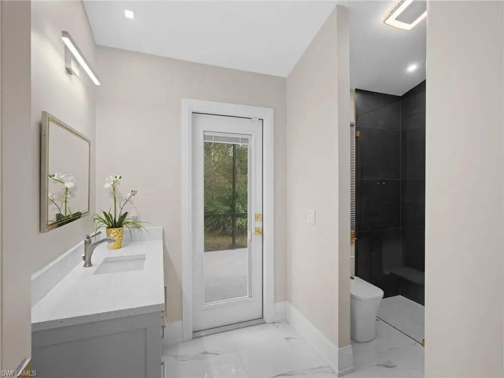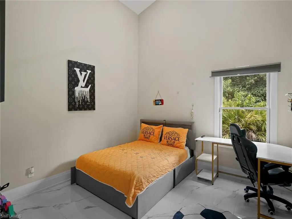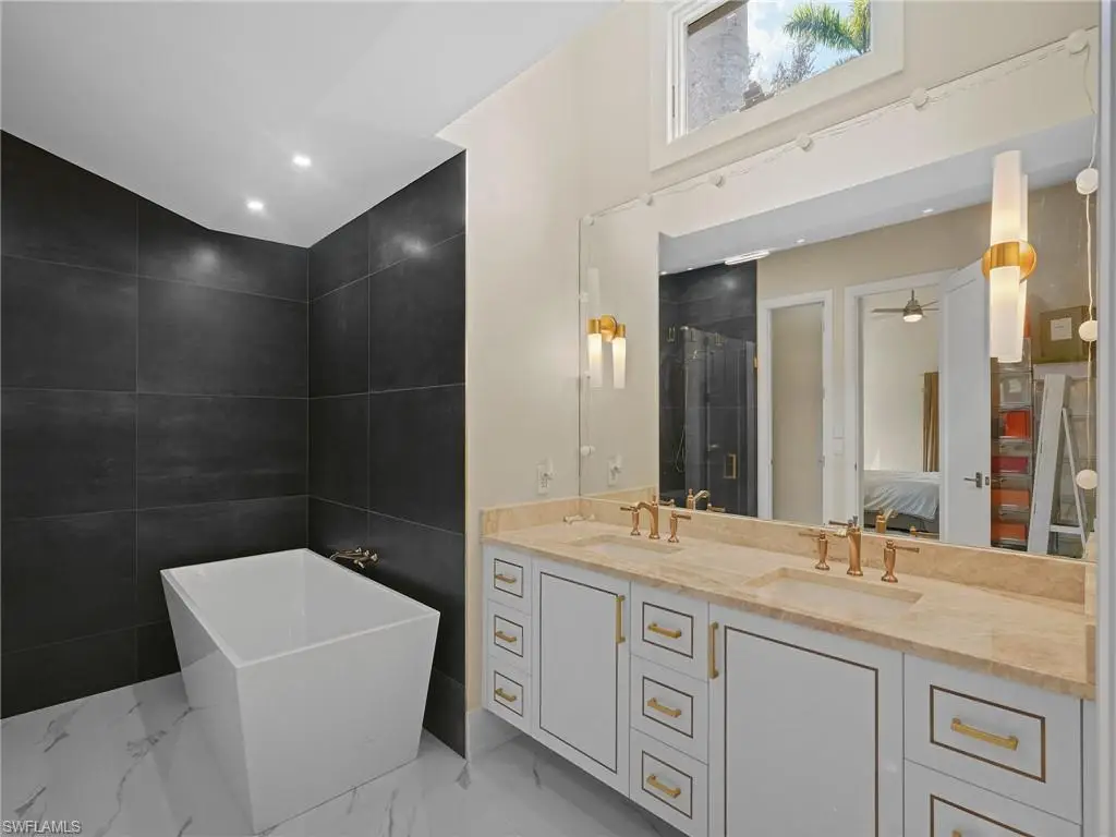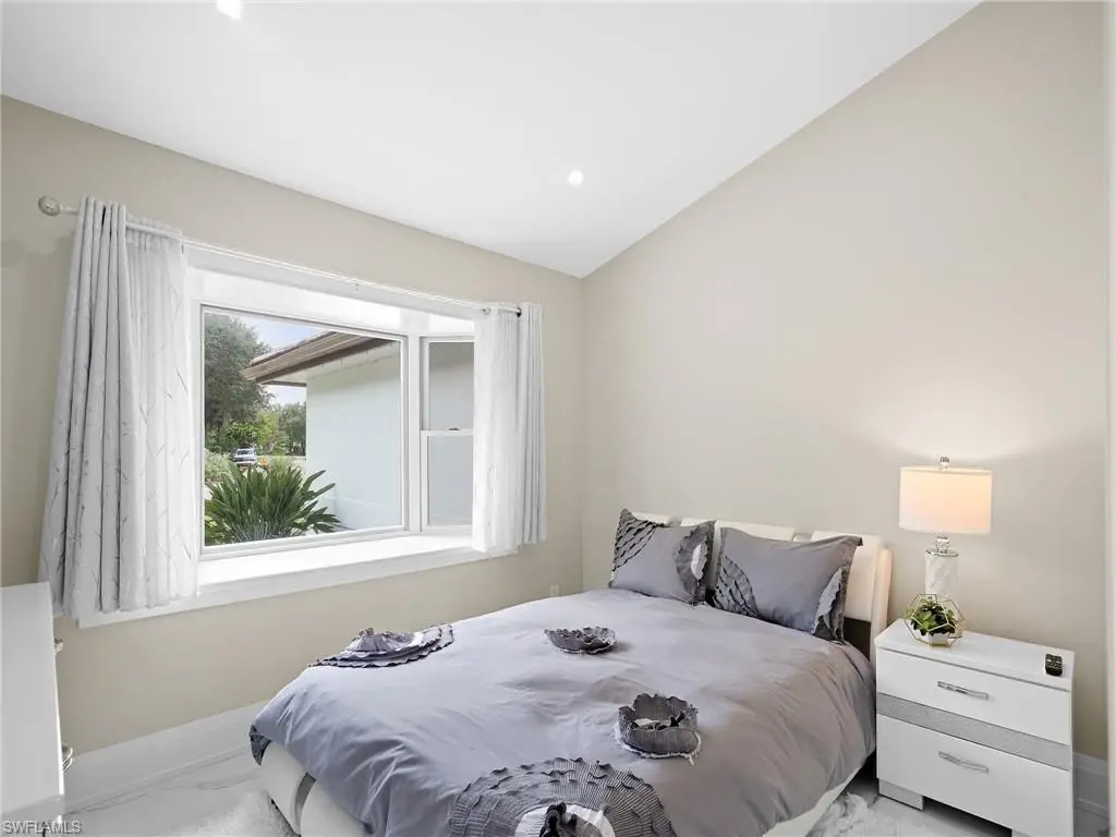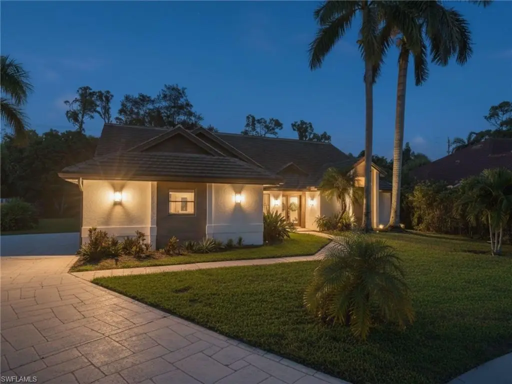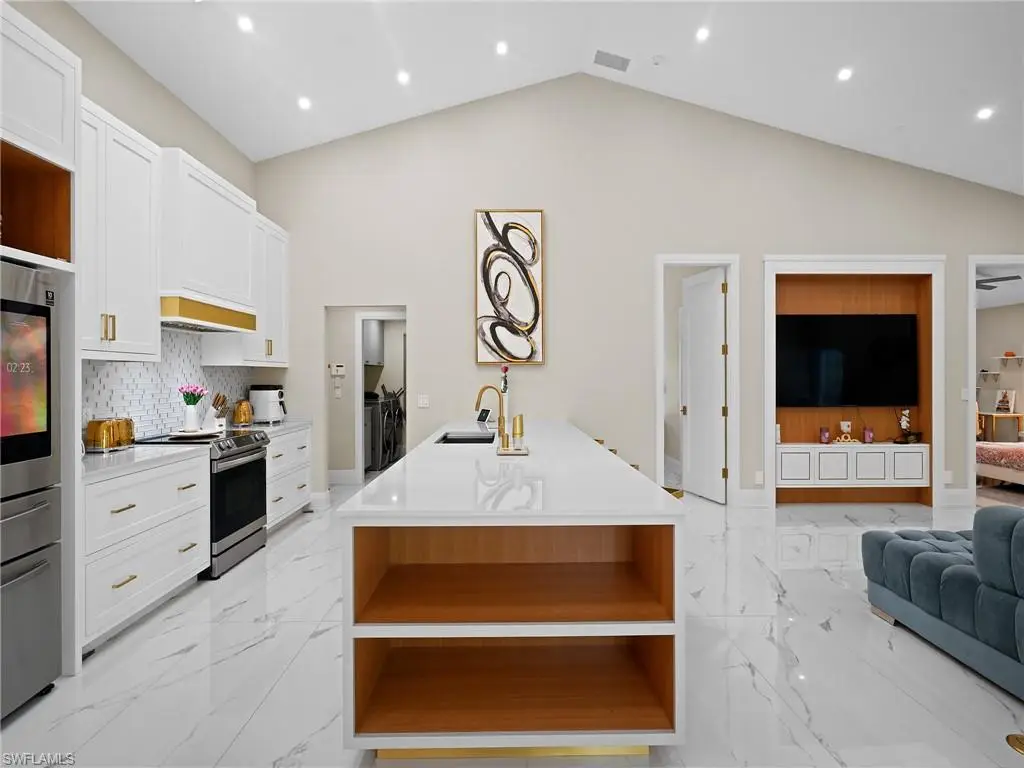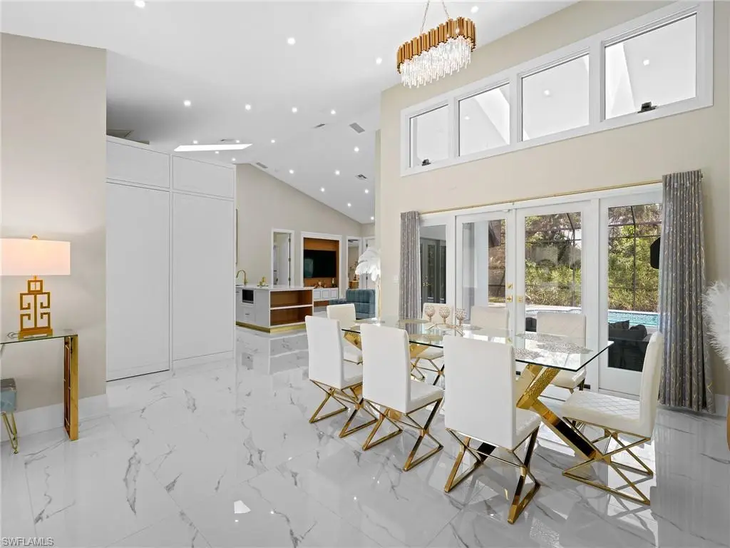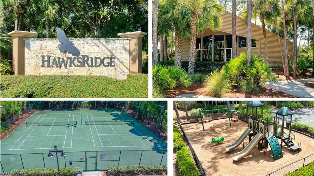 Exquisite Fully Remodeled Hawksridge Pool Home! Beautifully updated 3-bedroom plus den, 2-bath residence offering 2,229 square feet of living space in highly sought-after Hawksridge. French door entry opens to an airy layout with vaulted ceilings and modern porcelain tile flooring throughout. Spacious living and dining areas flow seamlessly to the screened lanai and pool, creating an easy transition between indoor and outdoor living. A gourmet kitchen features quartz countertops, stainless steel appliances, wine cellar, subway tile backsplash, abundant cabinetry, and a large peninsula with seating. The primary suite offers private access to the lanai, a generous walk-in closet, and a remodeled bathroom with dual sinks, a walk-in shower and a soaking tub. Outdoor living space includes an expansive screened lanai, sparkling pool, outdoor shower, and multiple seating areas for dining or relaxation. Situated on an oversized .59-acre lot with mature landscaping, the property offers exceptional privacy and curb appeal. Hawksridge is an established gated community known for low quarterly HOA fees, a clubhouse, fitness center, and tennis courts. Located just minutes from Naples beaches, shopping, fine dining, and entertainment, this home delivers both convenience and comfort. Move-in ready and fully remodeled, this property combines quality finishes, an open layout, and a premium central Naples location within a well-maintained community, perfect for buyers seeking a modern home with space, style, and privacy in a prime setting.