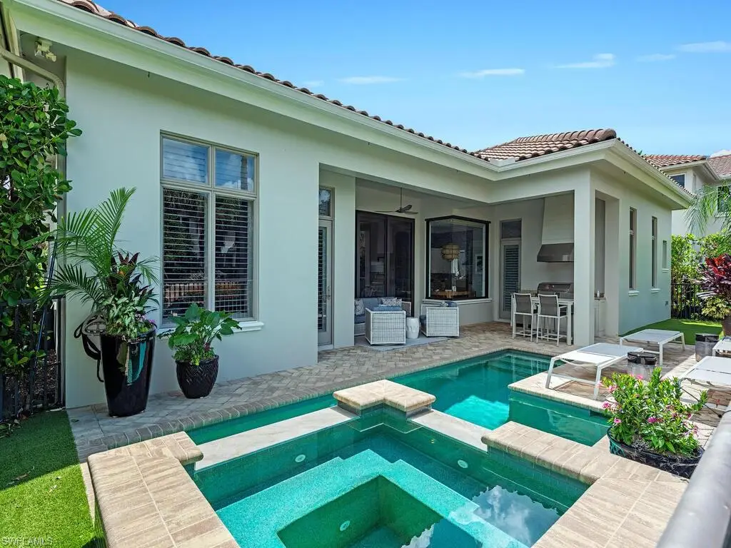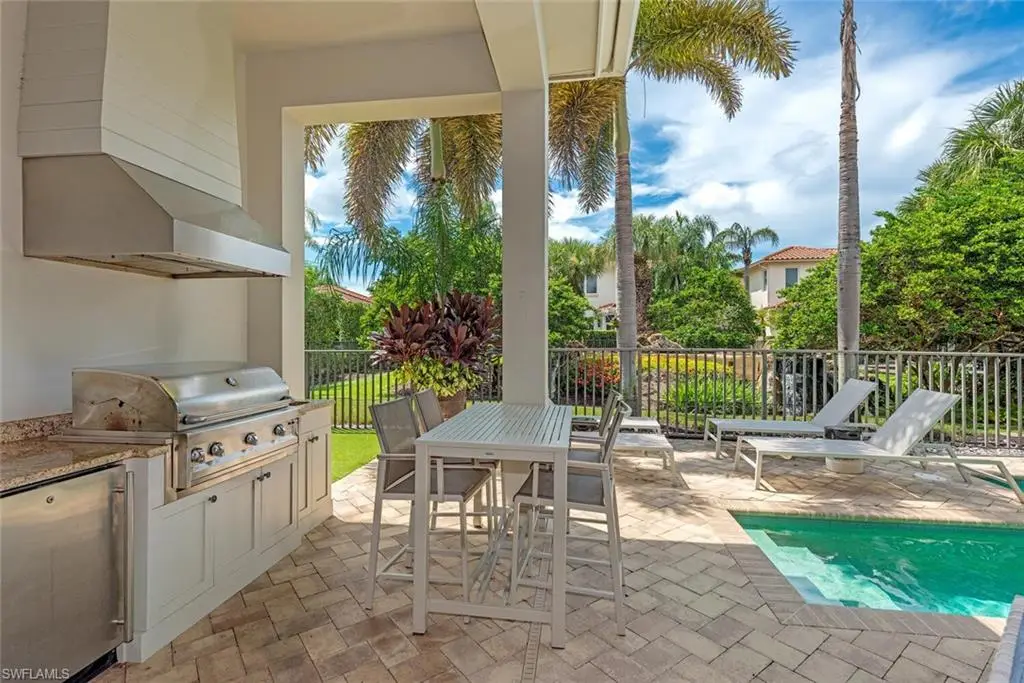 Welcome to Resort Style Living, Welcome to Grey Oaks! Beautifully furnished, this luxury home offers an ideal retreat in a peaceful setting. Designed with timeless finishes and practical elegance, this home features three spacious bedrooms and three-and-a-half baths, a large den and office. All are highlighted by high ceilings, detailed moldings, and premium flooring and all allow an abundance of natural light. The gourmet kitchen is equipped with Viking appliances and custom Heartland cabinetry, opening seamlessly to the large great room and an outdoor lanai. Perfect for entertaining, the outdoor living area includes a seating area with outdoor TV, a heated pool, spa, and summer kitchen, all overlooking a tranquil tropical waterfall feature. Andersen impact-resistant windows and doors provide security and peace of mind, while the attached two-car garage and separate golf cart garage add convenience. This Gulfshore-built residence delivers the perfect combination of style, comfort, and easy livingùan excellent choice for buyers seeking a refined lifestyle. Minutes from downtown, and the beach this home is not to be missed. Grey Oaks Country Club is Naples' one and only private club with 54 holes of championship golf. In addition, the club offers an unparalleled array of exclusive amenities, including a newly renovated wellness center, a lagoon-style pool, tennis, pickleball, bocce, multiple dining venues, and a luxurious spa. The amenities are truly endless.