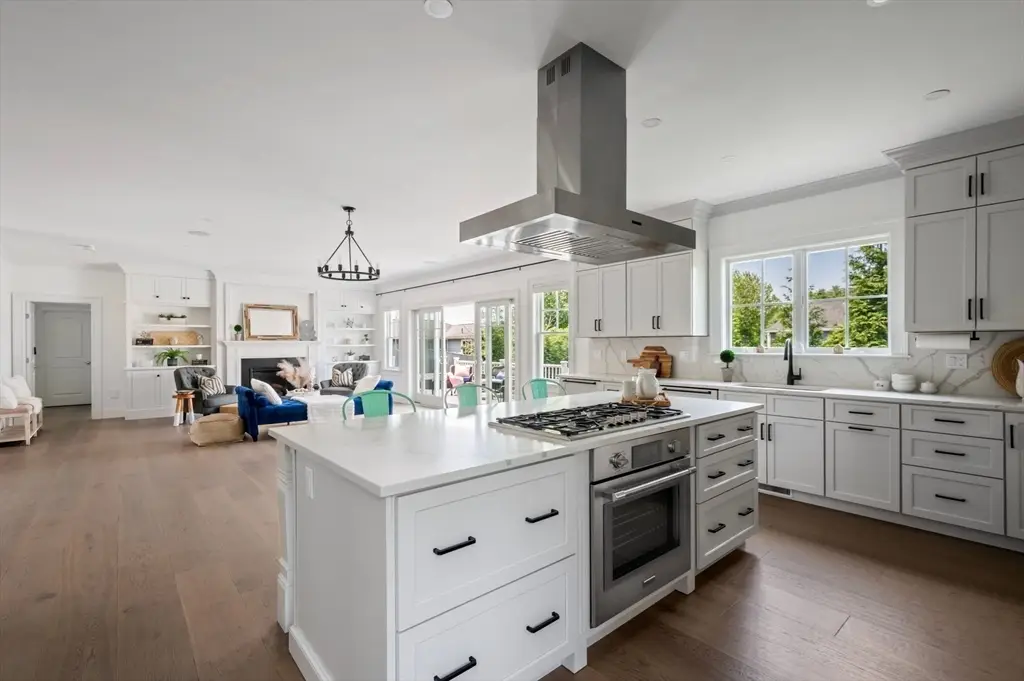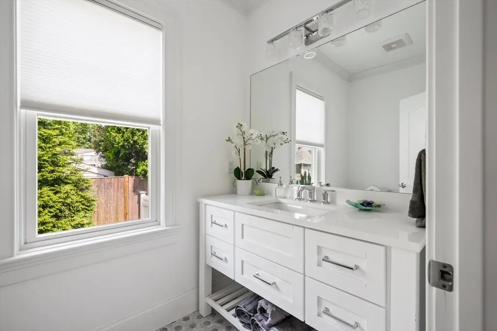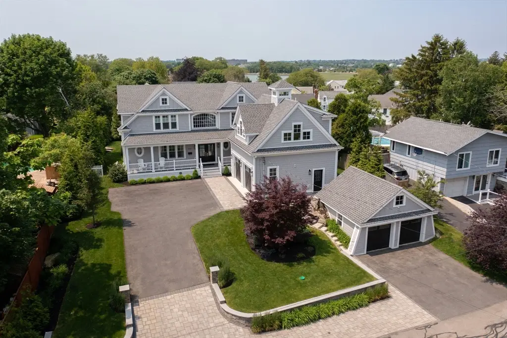 Located on the beautiful peninsula of Squantum and only 7 miles from Boston, this stunning 4+ bed, 5.5 bath open-floor plan home with top-tier finishes includes a gourmet kitchen with oversized pantry, gas fire place, home office, laundry, half bath, and a large deck-perfect for entertaining. A hot tub was recently added for ultimate relaxation! Both floors offer opulent primary en-suites. The 2nd floor en-suite with water/city views, includes a private balcony, his/her walk-in closets and a spa-like bath. All bedrooms have their own luxurious bathroom. An additional laundry room is located on the 2nd floor. A "bonus" room above garage with full bath and private entrance, can serve as a guest quarters, an au-pair suite or game room. The finished basement includes a gym with treadmill & TV. Two garage bays attached to the home with 2 additional bays in a detached structure. Professionally landscaped with custom exterior lightening. A rare opportunity in a coveted seaside neighborhood!