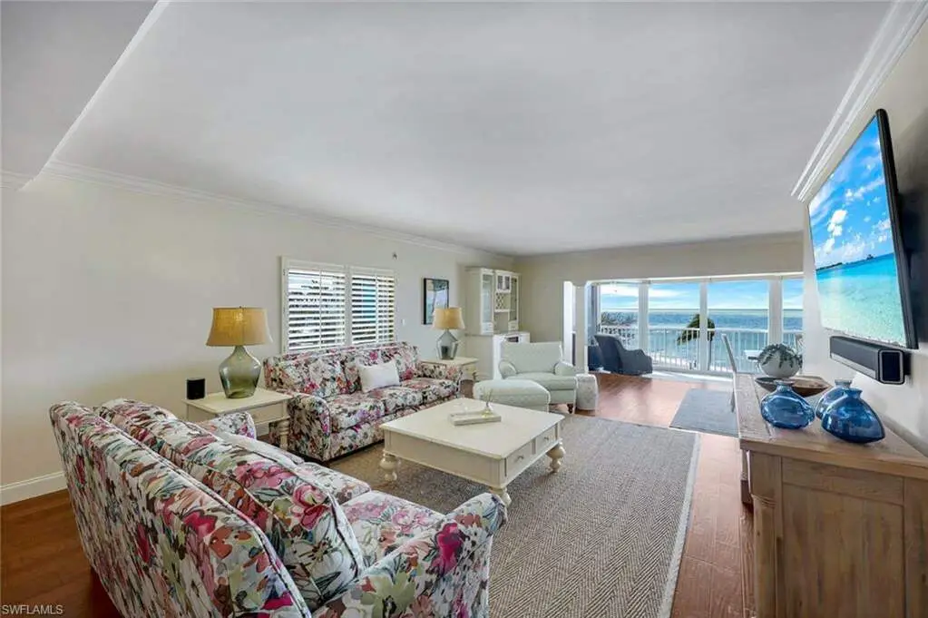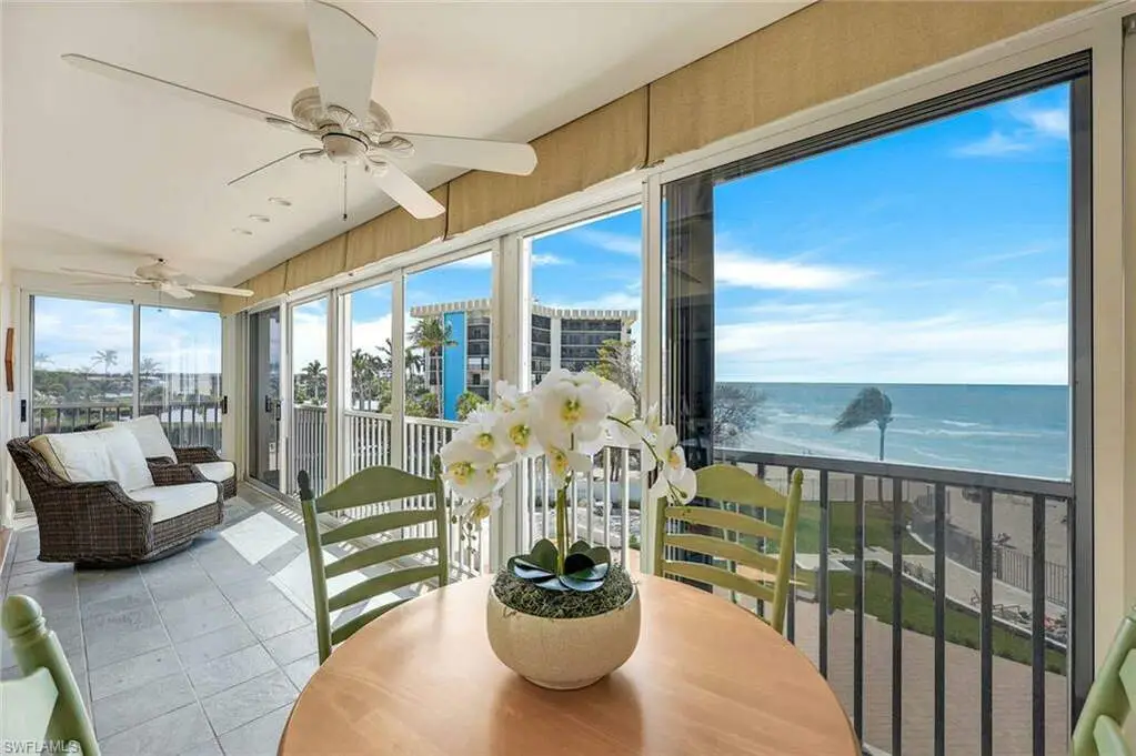 IF YOU ARE CONSIDERING BEACHSIDE RESIDENCE, DO NOT MAKE ANY LASTING DECISIONS WITHOUT VISITING. Welcome to Dolphin View ~ Sophisticated Boutique Beachfront Living at Pre-Pandemic Pricing. Wake up to the soothing sounds of the Gulf and take in breathtaking panoramic views from this tastefully updated beachfront residence. Nestled in the prestigious Moorings neighborhood, this rare gem offers an elevated coastal lifestyle just steps from the shore, with exclusive concierge services ensuring effortless luxury. Offered at pre-pandemic pricing, this home presents an exceptional value as the best-priced beachfront property on the market. From its beachside vantage, enjoy unobstructed views of the Gulf, creating a front-row seat to mesmerizing sunsets. Situated in an exclusive, low-density community, residents benefit from private beach access and on-site management, ensuring an intimate and tranquil retreat. Positioned in the coveted 3-stack location of the West Tower, this residence boasts one of the most sought-after floor plans, designed for seamless comfort while hosting and entertaining. The spacious and open layout flows effortlessly into an expansive lanai-an ideal setting for morning coffee or evening cocktails against a stunning coastal backdrop. Three luxurious master suites each feature en-suite bathrooms and custom-built designer closets, offering the ultimate in privacy and comfort. Resort-style boutique amenities enhance the experience, including a heated pool, spa, fitness center, and an elegant social lounge. Located just minutes from Venetian Village, 5th Avenue, and Waterside Shops, the home provides easy access to fine dining, upscale shopping, and luxury boutiques. Indulge in Naples' renowned culinary scene, where exceptional restaurants offer everything from fresh seafood to gourmet international cuisine, all just moments from your doorstep. This rare end-unit combines elegance, comfort, and exclusivity with refined designer finishes, ample storage, and under-building parking-all completely move-in ready. Now available at an exceptional value, this is a rare opportunity to own a sophisticated beachfront residence in one of Naples' most coveted coastal communities. Don't miss your chance to experience the ultimate in beachfront luxury.