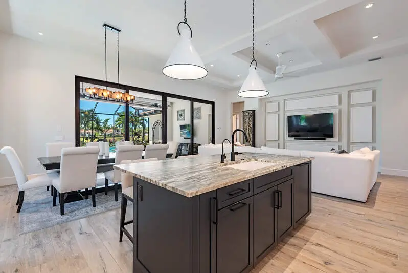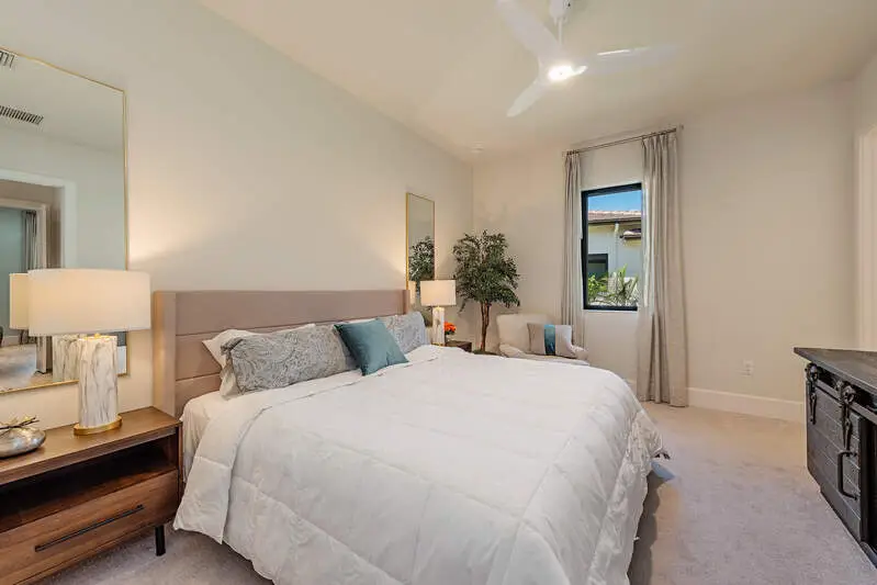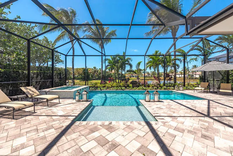 This spectacular resale, that is 5 years young, is a MUST SEE!!! Welcome to 16775 Cabreo Drive in Mediterra. This gorgeous London Bay built "Devonshire Model" with separate guest casita/guest house is one of a kind. Perfectly situated on this western exposure lot with a 3 car attached garage this home has gorgeous curb appeal. Come through the covered front porch, with double door entry, to this amazing open concept floor plan with soaring ceilings and walls of windows allowing all the Florida sunshine to stream in! Wood-look tiled plank flooring throughout the main living areas of the home, custom detailing, and crown molding are just some of the high end finishes you are sure to be looking for! The designer kitchen is perfect with white shaker cabinets on the perimeter and darker cabinets on the oversized island. The tiled backsplash, quartz countertops, high end stainless appliance package, recessed and pendant lighting, and plenty of counter space make this kitchen a Chef's dream. The dining area, adjacent to the kitchen and great room plus outdoor dining and seating make this home a fabulous place to entertain with plenty of seating for everyone. The oversized great room, with TV wall, custom millwork and accents, tray ceiling and large oversized sliders, opens to the lanai. A spacious owner's retreat provides the perfect place to rest peacefully. Two walk-in closets, a large walk-in shower, soaker tub and oversized dual vanities complete the en-suite space. The den is tucked away from the great room to allow for quiet privacy when needed. There are 2 additional guest suites in the main house both with double closets and en-suite baths. The split bedroom floor plan allows for privacy for you and your guests. A separate one bedroom/studio Casita /guest house with en-suite bath and private access can be used for guests or office space - you decide! Outside, under the covered lanai enjoy the western sunset views, a fully equipped outdoor kitchen with refrigerator, sink and built-in grill. A glistening pool and spa await you for relaxing in the Florida sunshine. Fully screened lanai cage and expanded decking provide the perfect spot to watch the sun set and relax after a day of sun-filled activities. Lake views from the lanai and great room and landscaped area at the front of the home, with no other homes across the street, provide the upmost of privacy. A whole home generator, Natural gas community, flat tiled roof, storm protection give you the best in storm protection. Mediterra's world-class amenities include: a Private Beach Club, Tennis, Pickleball, Wellness Center, and two Tom Fazio-designed golf courses! This home offers the perfect blend of luxury, style, and functionality. Mediterra is centrally located minutes from down town Naples and Bonita Springs with fine dining and shopping galore. RSW Airport is a 25 minute drive! Is this the home for you? We invite you to come see for yourself!!