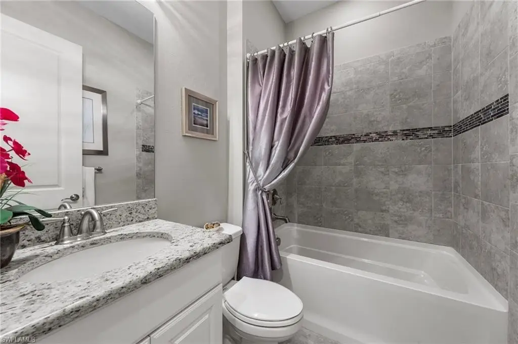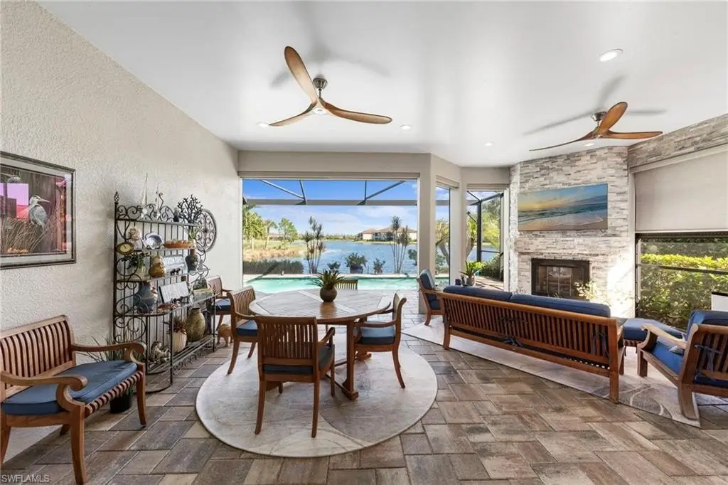LIVE THE GOOD LIFE AT ESPLANADE GOLF AND COUNTRY CLUB! GOLF MEMBERSHIP INCLUDED!!! Experience resort-style living in one of Naples most sought-after Golf and Country Club communities. This stunning Lazio-style home offers SERENE LONG LAKE AND GOLF COURSE VIEWS with exceptional privacy, creating the perfect setting for relaxed luxury. A beautifully landscaped entry welcomes you inside to a bright, open-concept floor plan featuring a spacious great room and dining area seamlessly connected to an extended, gourmet kitchen. Enjoy white cabinetry, quartz countertops, stainless steel appliances, a natural gas cooktop, and a charming breakfast nook—ideal for everyday living or entertaining. Custom window treatments and warm wood flooring throughout the main living area complete the home’s look of comfortable sophistication. The primary suite offers a private retreat with a spa-inspired bathroom featuring dual vanities, a walk-in shower, soaking tub, and a generous walk-in closet. Two guest suites, each with its own private bath, ensure comfort and privacy for overnight visitors, while the den provides flexible space for a home office or sitting room. Step through two sets of sliding glass doors to the outdoor living area with picture window screening, designed to maximize lake and golf views . El fresco entertaining is effortless with with a well equipped outdoor kitchen, and relaxing on cool nights is comforting by the gas fireplace with stone surround. The heated pool beckons you for an afternoon swim. This cozy outdoor living area offers the perfect venue for morning coffee, afternoon swims, or evening gatherings. Additional features include: Hurricane shutters and screens for extra protection of covered lanai area and year-round comfort, IMPACT WINDOWS AND DOORS THROUGHOUT for peace of mind, and additional 2025 improvements including a professionally epoxied garage floor, new pool filter, new microwave, new garbage disposal, and extensive landscaping. At Esplanade Golf & Country Club, every day feels like a vacation. Enjoy world-class amenities including a resort-style pool with cabanas and the adjoining Bahama Bar for casual food and beverage, tennis, pickleball, and bocce. The popular Wellness center offers a state of the art fitness center with exercise classes and the luxurious Koquina Day Spa. The amenity center is a popular place for card games and other social gatherings and the dog park offers an opportunity for our fur babies to socialize. Enjoy the 14 miles of walking and biking trails. The 18-hole private golf course is the crown jewel of the community and 15,000 sq. ft. clubhouse offers indoor and outdoor dining, a full bar, wine tasting room, wine lockers, and a cozy café. In addition to golf, all club amenities, landscaping, and irrigation, are included in dues of $3,412 per quarter! Located in Flood Zone X, NO FLOOD INSURANCE REQUIRED! Best of all, this beautiful home is offered TURNKEY FURNISHED!!