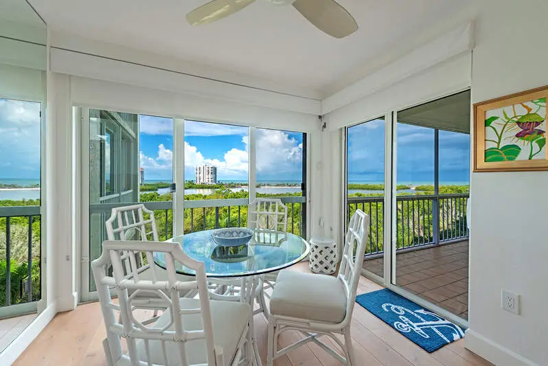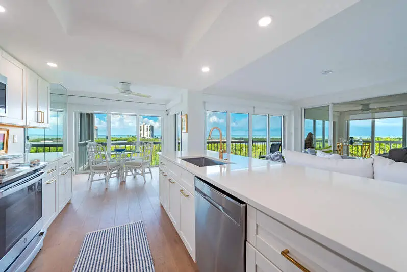 This stylishly renovated residence showcases breathtaking, panoramic GULF and BAY views, designed to maximize natural light and coastal living. Offering 2 Bedrooms + FLEX space and 2 Baths, the open floor plan features French oak flooring throughout the main living areas and a split-bedroom layout that ensures privacy for guests. St. Tropez welcomes you with its coastal-chic lobby and resort-style amenities, including two guest suites, a large pool with outdoor kitchen, social room, fitness room, and the benefit of a dedicated on-site property manager. Ideally located next to the Pelican Bay tram, you'll enjoy quick and effortless access to the BEACH. As a Pelican Bay resident, you'll experience unrivaled amenities: two beachfront restaurants/bars with attended service, a state-of-the-art fitness center, 18 Har-Tru tennis courts, kayaking, biking, a learning center, and miles of scenic nature paths. Artis-Naples, Waterside Shops, and Mercato are just minutes away!