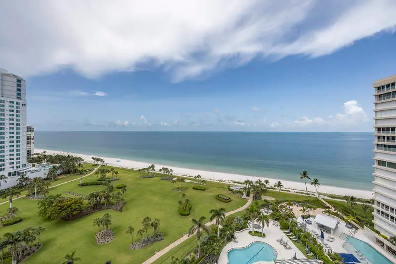 Welcome to this breathtaking Gulf-front residence, perched on the 17th floor of the prestigious Park Shore Tower. Walls of glass fill the space with natural light and frame panoramic views of the coastline. This expansive residence offers a bright, open layout designed for both elegant entertaining and everyday comfort. The kitchen boasts stunning views and is outfitted with granite countertops, stainless steel appliances, and elegant lighting fixtures. The spacious primary suite is a private oasis, featuring a spa-inspired bath wit tiled walk-in shower, soaking tub, bidet, and a customized walk-in closet. Step onto your private balcony to savor your morning coffee while taking in serene views and coastal breezes. The thoughtfully designed floor plan includes a guest suite with an en-suite bath and a third bedroom or office with a private bathroom, which can also function as a powder room for guests. At the end of the day, unwind on the south-facing lanai and watch the sun dip below the Gulf horizon-your front-row seat to spectacular sunsets. Additional highlights include under-building parking, storage, and access to a host of upscale amenities at Park Shore Tower: 24-hour security, a welcoming lobby, fitness center, and a newly updated pool area with a beachfront clubhouse. Just a short stroll away, enjoy the charm and energy of Venetian Village, with its sparkling lights, dining, and boutique shopping. Waterside Shops, Old Naples, and Mercato are also just minutes away. This exceptional residence blends timeless elegance with a relaxed, move-in-ready lifestyle-your perfect coastal sanctuary awaits.
