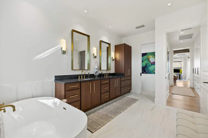 • Master suite with beamed ceiling and spa-like bath