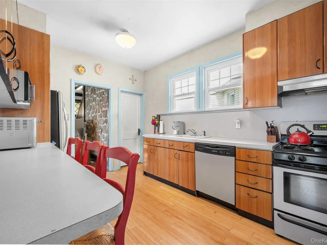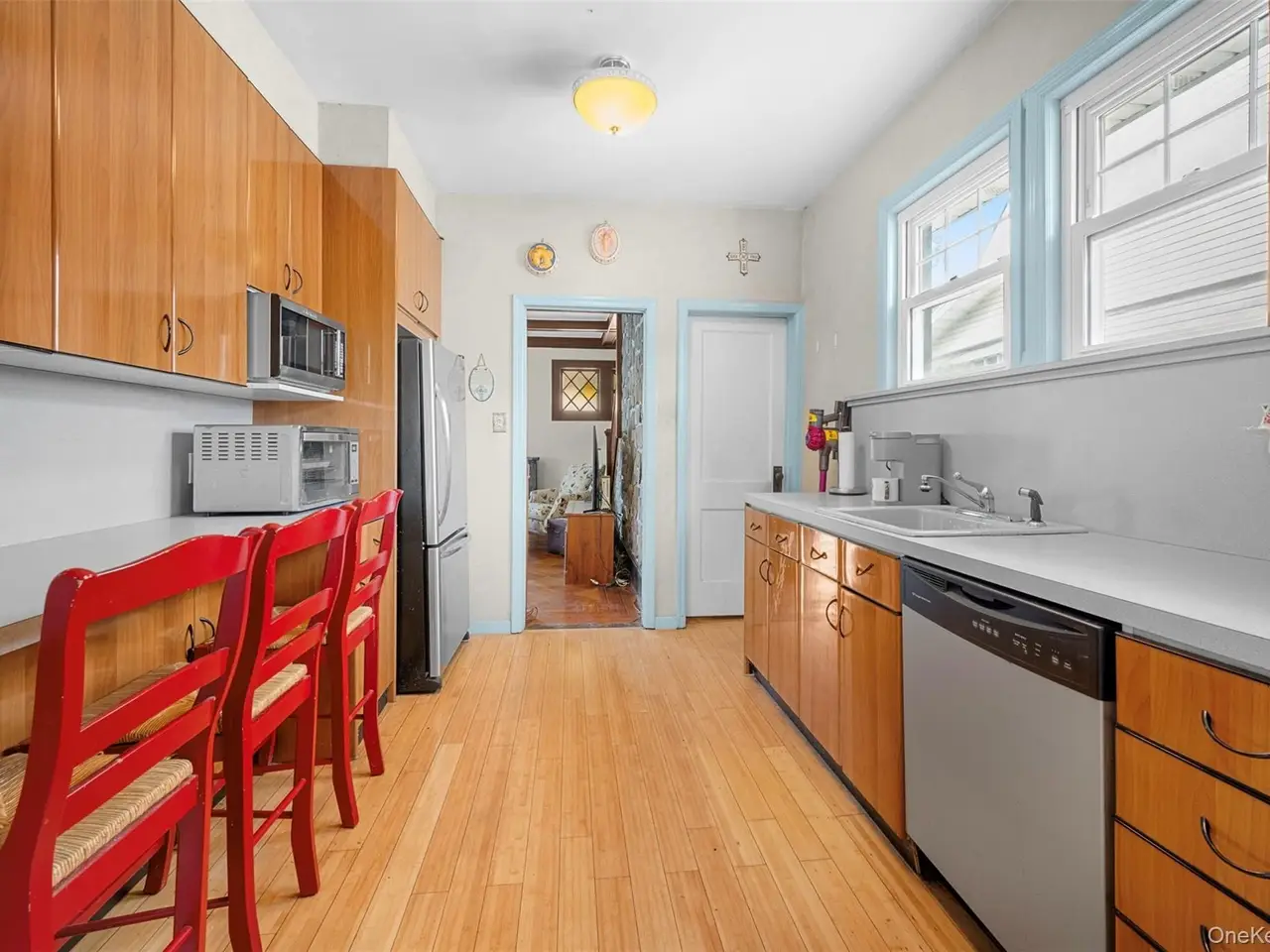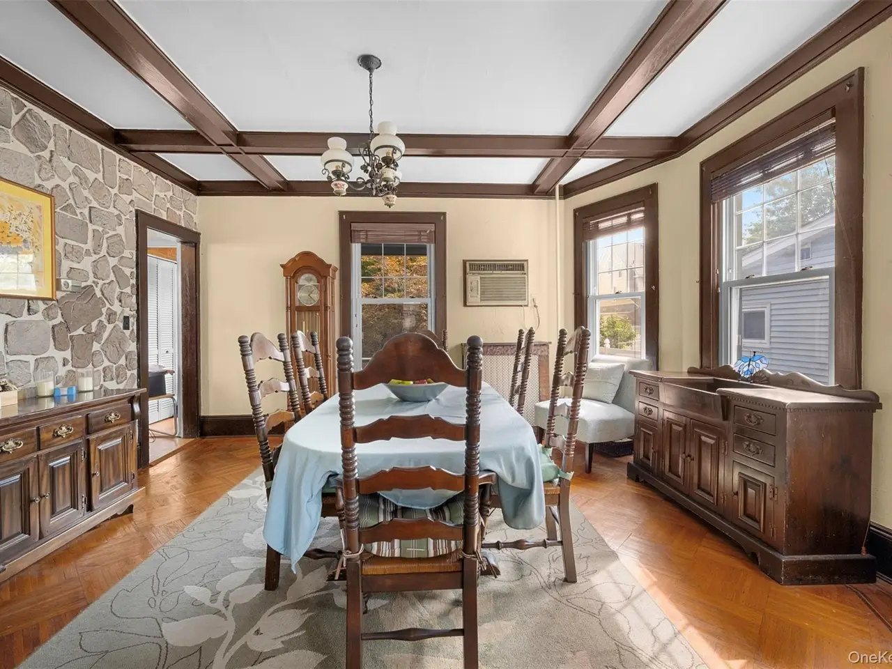 Nestled in the heart of Bayside on a quiet street, this charming Dutch Colonial Revival home is a true classic with beautiful beamed ceilings. Spanning three levels, it offers a spacious formal living room and dining room filled with natural light from abundant windows. The home features four generously sized bedrooms and a cozy updated porch overlooking the backyard perfect for relaxing. Recent updates include a new hot water heater (2023)