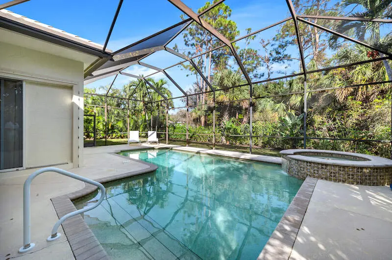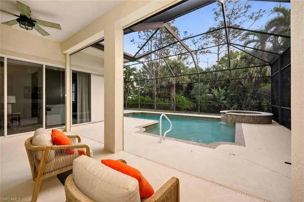 RARELY AVAILABLE 4 bed plus Den, 3 car garage home west of 75! Nestled in fabulous Horse Creek Estates, an enclave of 109 homes with low fees. Set on an oversized corner lot overlooking a 13-acre conservation preserve. The open floor plan, with soaring ceilings, large living/dining room and family room, has lots of space for family and guests. The open concept kitchen has a center island, breakfast bar, new stainless appliances and pantry. The large primary suite has two walk-in closets, bath with separate tub and shower, and dual vanities. The three guest bedrooms are thoughtfully designed for privacy. The office has new built ins. The screened lanai has a new hurricane screen so you never have to move your furniture, and the pool and spa have been converted to salt water for healthier living. Other recent upgrades include: new landscaping, plantation shutters, interior paint, hot water heater and whole house surge protection and generator with a buried 500 gallon propane tank. The oversized 3 car garage has storage racks and shelving. This home is a true gem in North Naples with A rated schools and close proximity to beaches, shopping and restaurants. No hurricane damage.