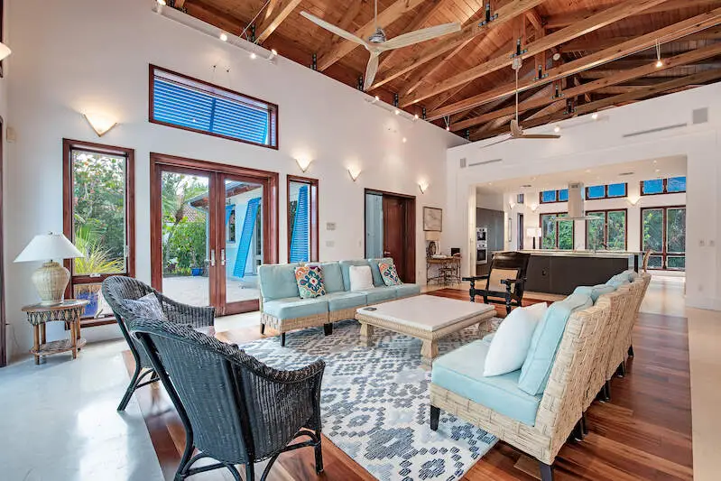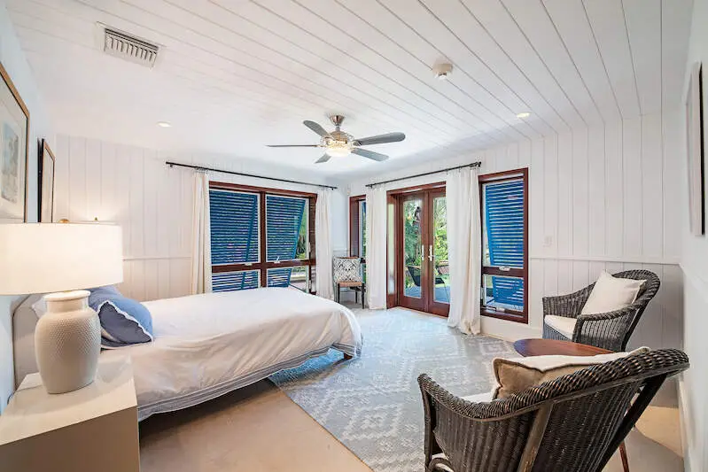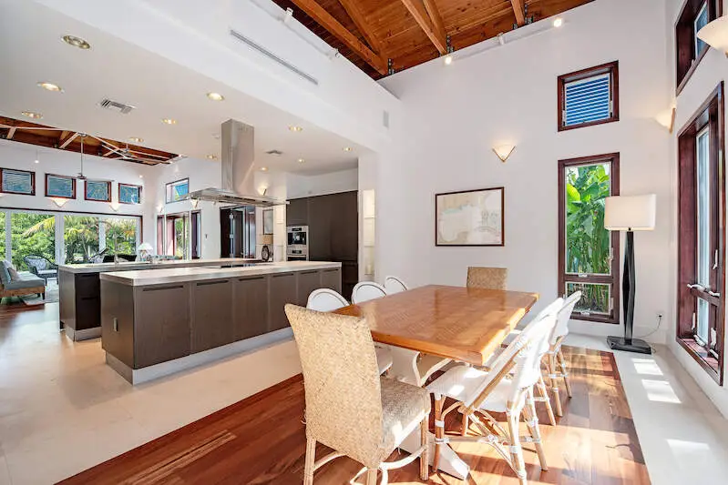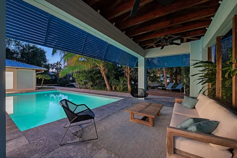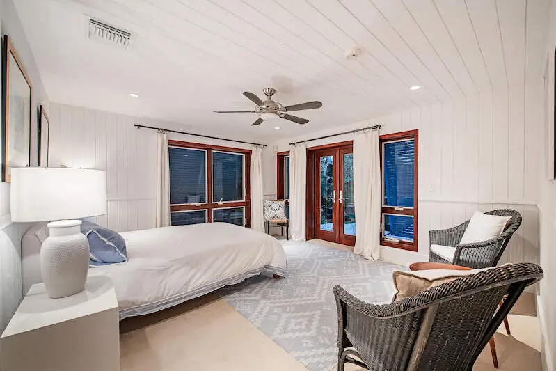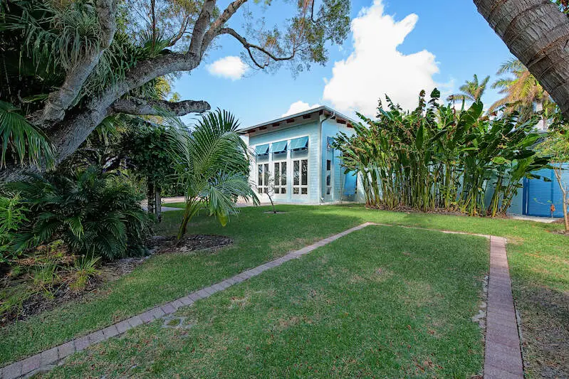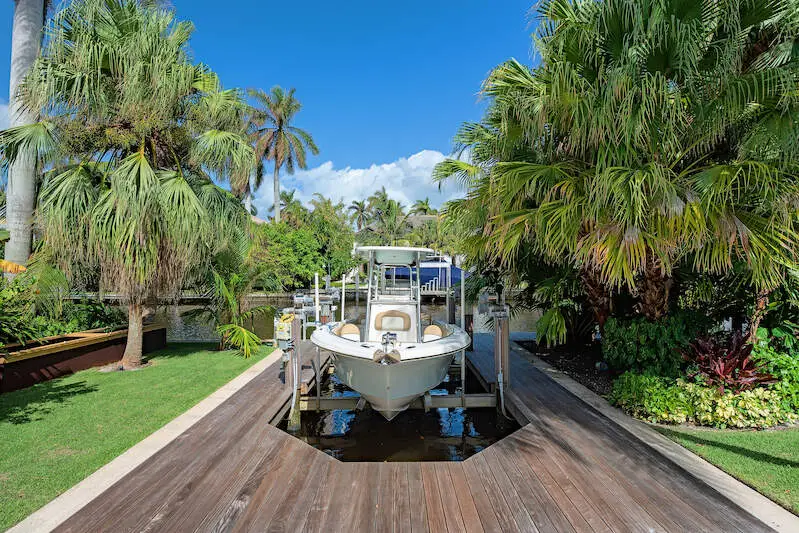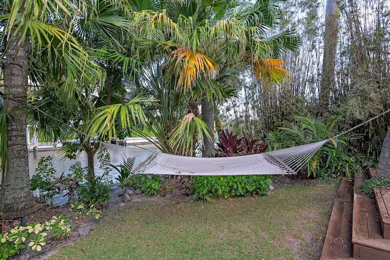 Showcasing a myriad of quality finishes and an eclectic coastal design, this waterfront residence offers backyard Naples Bay access and is walkable to all that Third Street South has to offer, including fine dining, world-class shopping, and cultural events. The main living spaces are defined by vaulted, exposed and stained beam ceilings, cherry wood inlays, and copious windows. Each space, from the formal dining room, to the kitchen, living room, and family room, are all interconnected, creating an ideal space for entertaining guests or enjoying intimate family dinners. Without argue, the gourmet chef's kitchen is the heart of the home and is equipped with top-of-the-line Miele appliances, multiple islands, as well as frosted glass and custom walnut cabinetry. Large sliders and French doors seamlessly connect the interior and exterior living environs which offer a true tropical setting that is unmatched with its varied vegetation including bamboo and fruit trees, sunbathing deck, a secluded hammock framed by palms, outdoor shower, a loggia with tongue and groove ceiling, and a boat dock with cutout, lift, as well as fish-cleaning station. The master suite, which has private access to all the aforementioned exterior environs, is a retreat in itself, and showcases a continuation of vaulted exposed beam ceilings, shiplap detailing, built-in bookshelves, and a bathroom complete with floating vanities and walk-in shower. Completing the all one level residence are two guest suites, one of which also has private exterior access, that are enveloped in nautical-inspired shiplap wall details, a den / flex space, as well as a half bathroom. Additional notable enhancements include a generator, 1,000 lb propane tank, multiple above-ground and irrigation-equipped metal garden beds, standing-seam metal roof, a wine cooler, Halo whole-house water filtration system, and so much more.