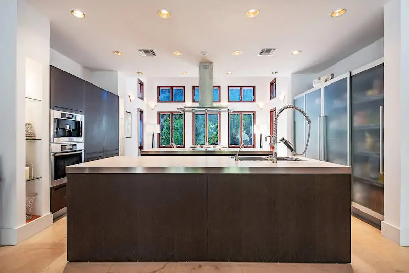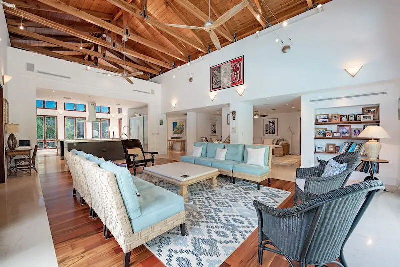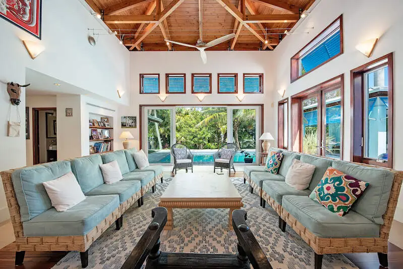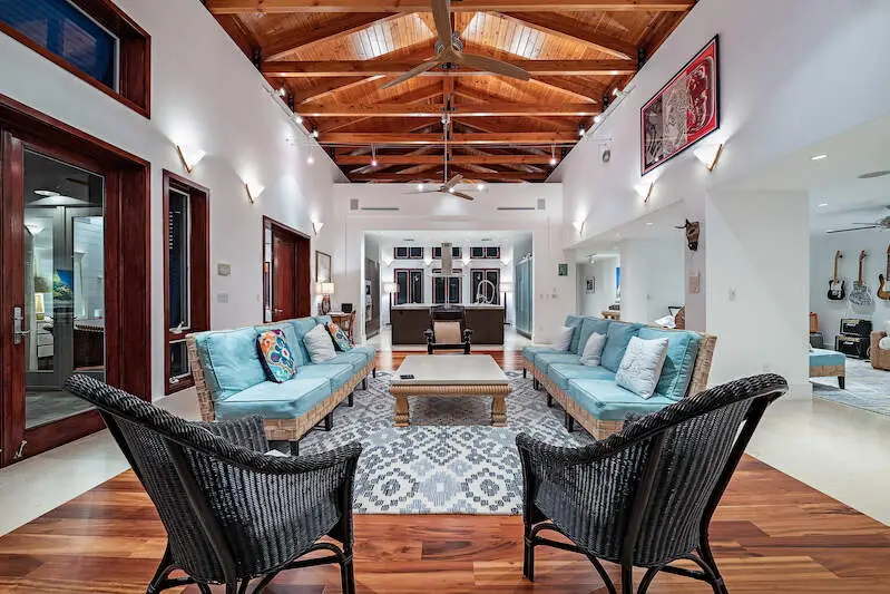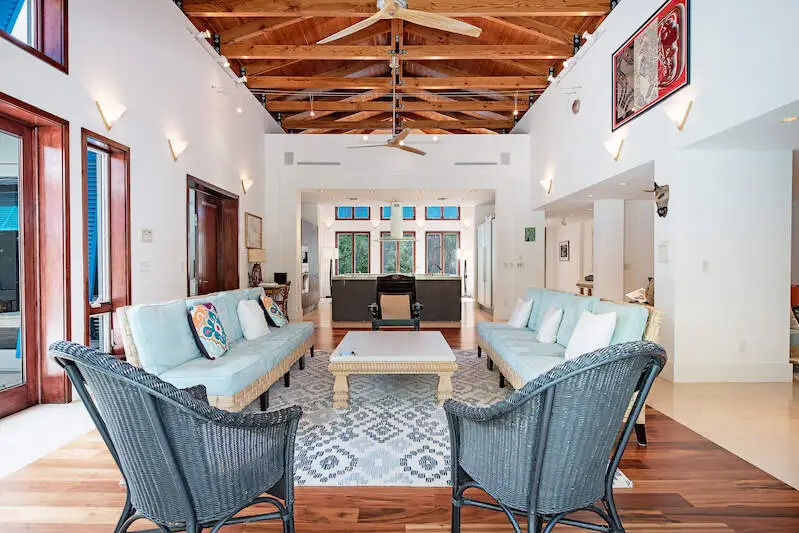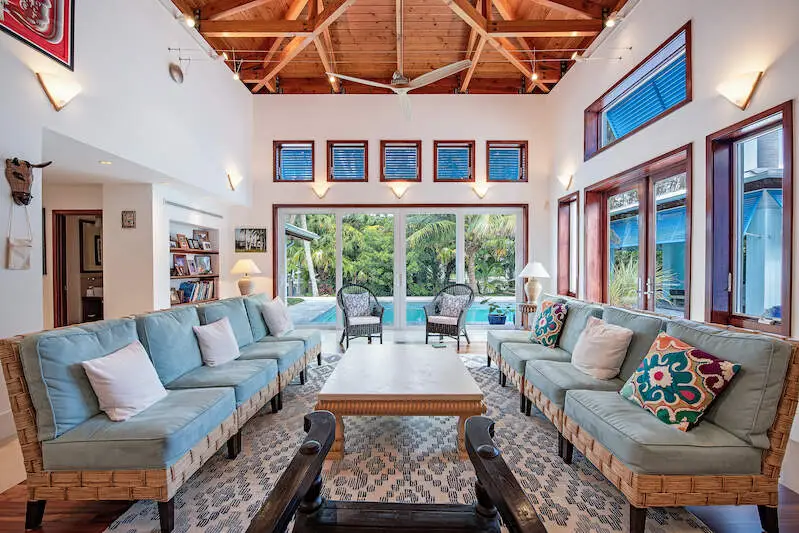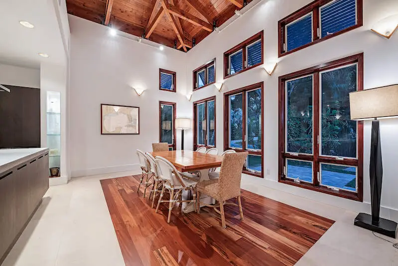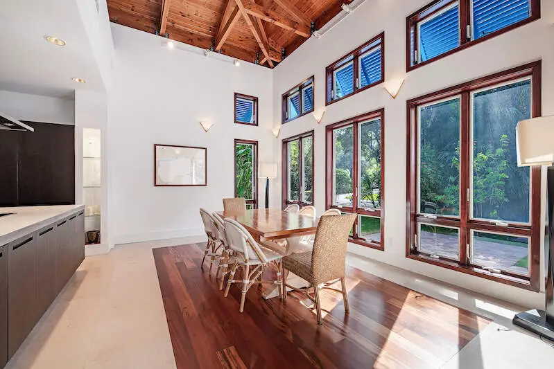 Showcasing a myriad of quality finishes and an eclectic coastal design, this waterfront residence offers backyard Naples Bay access and is walkable to all that Third Street South has to offer, including fine dining, world-class shopping, and cultural events. The main living spaces are defined by vaulted, exposed and stained beam ceilings, cherry wood inlays, and copious windows. Each space, from the formal dining room, to the kitchen, living room, and family room, are all interconnected, creating an ideal space for entertaining guests or enjoying intimate family dinners. Without argue, the gourmet chef's kitchen is the heart of the home and is equipped with top-of-the-line Miele appliances, multiple islands, as well as frosted glass and custom walnut cabinetry. Large sliders and French doors seamlessly connect the interior and exterior living environs which offer a true tropical setting that is unmatched with its varied vegetation including bamboo and fruit trees, sunbathing deck, a secluded hammock framed by palms, outdoor shower, a loggia with tongue and groove ceiling, and a boat dock with cutout, lift, as well as fish-cleaning station. The master suite, which has private access to all the aforementioned exterior environs, is a retreat in itself, and showcases a continuation of vaulted exposed beam ceilings, shiplap detailing, built-in bookshelves, and a bathroom complete with floating vanities and walk-in shower. Completing the all one level residence are two guest suites, one of which also has private exterior access, that are enveloped in nautical-inspired shiplap wall details, a den / flex space, as well as a half bathroom. Additional notable enhancements include a generator, 1,000 lb propane tank, multiple above-ground and irrigation-equipped metal garden beds, standing-seam metal roof, a wine cooler, Halo whole-house water filtration system, and so much more.