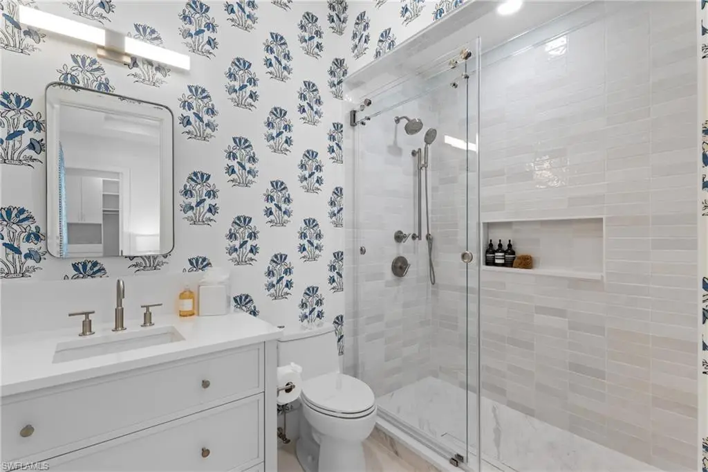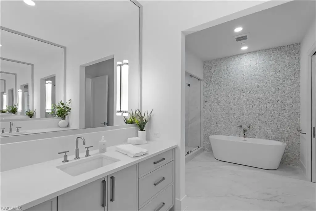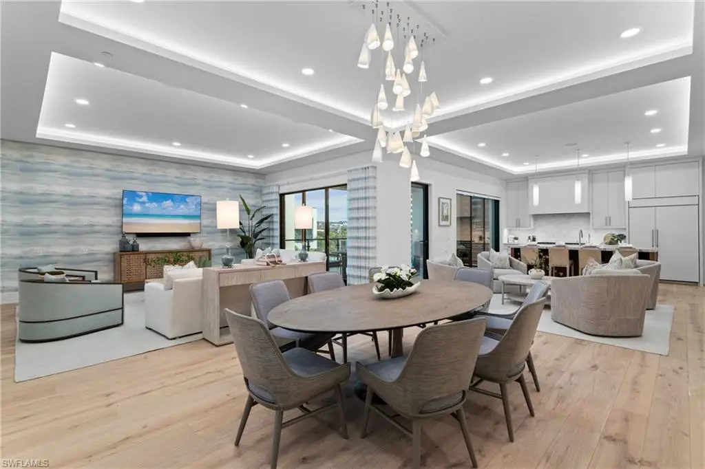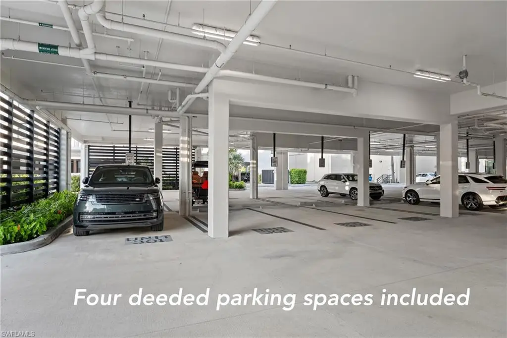 A true one-of-a-kind! Welcome to Stella Naples, where luxury meets exclusivity in the heart of Olde Naples. Built in 2024 with only nine total residences (each with their own PRIVATE ROOFTOP DECK), this newly constructed boutique building redefines upscale, low-density living, just steps from the world-renowned 5th Avenue South, historic Downtown Naples, and the white sandy beaches of Naples. Unit 301 is an extremely unique residence consisting of two units that were combined during original construction and offers nearly 4,100 square feet under air, 4 bedroom suites (each with a private ensuite bath), den, music room, 4.5 baths, two covered lanais (with motorized roll down privacy/bug screens) each with their own gas fireplace, and FOUR DEEDED PARKING SPACES underneath the building. This tastefully designed top floor, end unit condo offers an open concept floor plan with 10' ceilings, 4 sets of sliding glass doors to the two lanais, and rich wide plank European White Oak wood floors that flow throughout. The Kitchen has been outfitted with custom Ruffino cabinetry, Cambria quartz countertops, top of the line appliances including a 48ö eight burner GAS Viking range and Sub-Zero refrigerator/freezer. Just off the Kitchen is a generously sized walk-in pantry with Miele speed oven. The impressive wet bar is complete with a wine cooler, ice maker, and ample bottle/glass storage. The impressive primary suite features its own private lanai with gas fireplace, separate his & hers walk in closets with custom shelving/drawers, auxiliary washer/dryer, music room with hidden storage closet, bath with oversized shower & free standing soaking tub, and a private den. Accessed from within the condo, the private 1,000 sq ft roof top deck is the perfect spot to enjoy the Naples sunset or entertain family & friends around two fire pit areas or outdoor kitchen complete with a gas grill and refrigerator, creating the ultimate setting for sunset cocktails before dining at one of the many iconic restaurants here in Downtown Naples. A long list of special features can be found throughout: motorized shades on all windows; custom window treatments/curtains; custom wallpaper details; recessed lights in all rooms; reverse osmosis water filtration system; in-ceilings speakers; 8' solid core doors with Emtek hardware; stained cypress wood ceiling accents on the lanais; custom Ruffino cabinetry with Cambria countertops; designer Brizo, Rohl & Kohler bath fixtures; and more! Residents of Stella Naples enjoy an exclusive collection of amenities, including a sunny Southern-exposure 24/7 heated pool, state-of-the-art fitness center with an outdoor turf area, and an elegant club room. The building also provides four deeded parking spaces, ample guest parking, and state-of-the-art security, featuring facial recognition technology and smartphone-integrated video access panels. Experience the finest in Downtown Naples luxury living at Stella Naples.