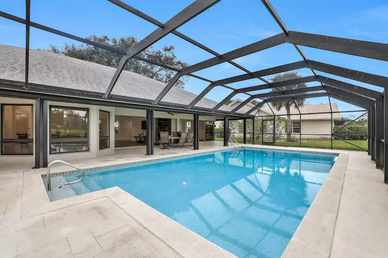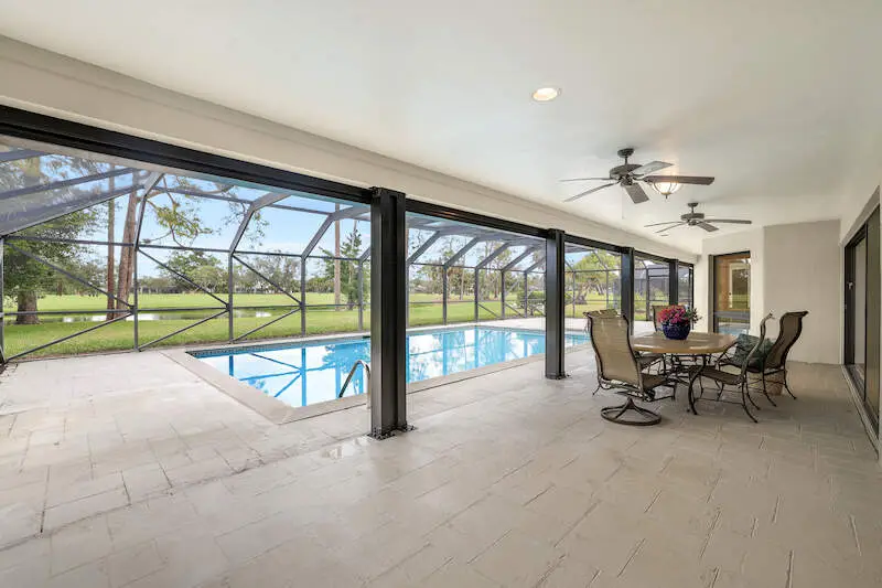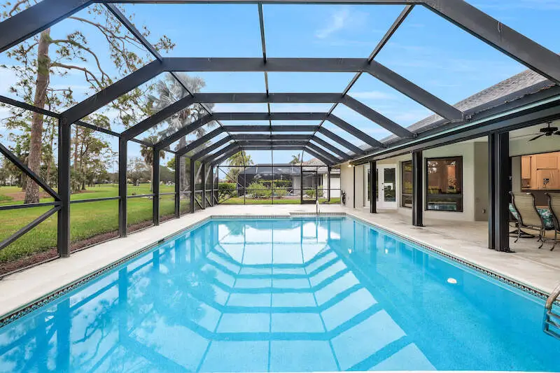 Wonderfully updated home on a quiet cul-de-sac street with beautiful lake and golf views. Light, bright and spacious home with great room floor plan. Everything is new here. All new cabinetry in the kitchen with lovely quartz counters. An oversized walk in pantry is accessible from the great room or kitchen. All new luxury vinyl plank flooring flows from room to room. Lovely modern bathrooms with frameless doors, beautiful tile and all new cabinetry, counters and fixtures. The floor plan has an extra mudroom for storage and there is a separate screen in dog run as well. The huge lanai has amply space for dining, sitting areas and lots of sunning space by the sparkling pool! All windows and doors have been upgraded to hurricane impact and there are electric shutters too. A full house generator also brings peace of mind from any power outages. Newer roof. Low HOA fees. A rated schools. Close to Naples white sandy beaches, shopping & dinning options, North Collier regional park and more.