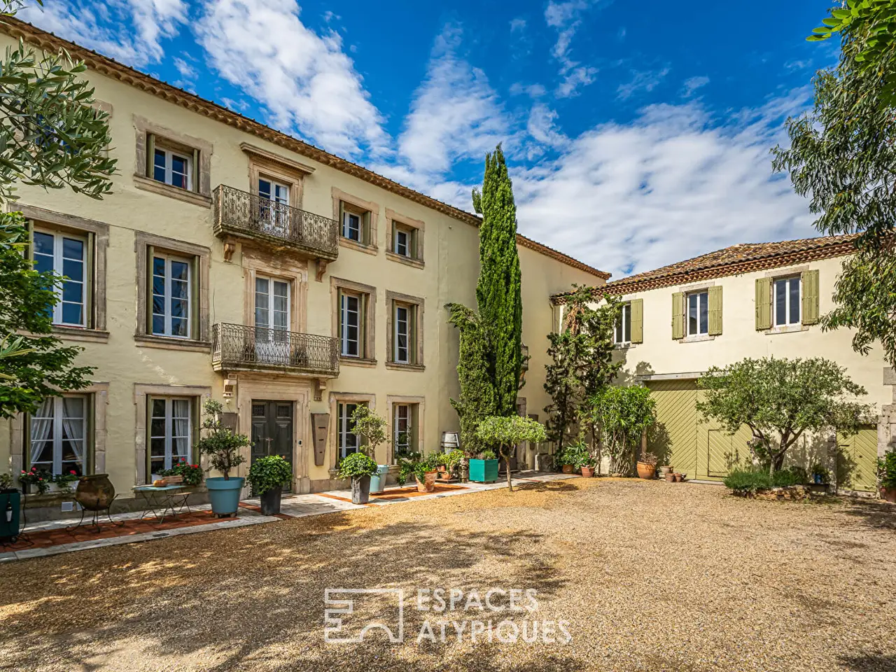 Discover this jewel nestled just 15 minutes from Narbonne and 30 minutes from the Mediterranean Sea. This majestic residence, imbued with undeniable character, will seduce you with its unique character and its generous volumes. Imagine the countless possibilities offered by this extraordinary property: event projects (wedding, reception, etc.), artistic exhibitions, daring cultural projects, creation of new living spaces? An opportunity to highlight your creativity, opening the field of possibilities. Enchanting and welcoming, this residence unfolds like a haven of peace where every corner exudes serenity. Let yourself be charmed by the magic of the place, which is ideal for receiving guests and guests. Here, every moment becomes a celebration of beauty and harmony, making this place an enchanting setting, perfectly suited to exceptional life projects. This timelessly elegant estate, built on a park of approximately 4,450 m2, offers a completely renovated mansion of approximately 550 m2, the first stones of which were erected in the 18th century. From the entrance, the tone is set, like a surface of expression with infinite potential, offering a magnificent backdrop to the original elements which have been staged to magnify them: the woodwork of the dining room and fireplace from the 18th century, the Armissan stone staircase, the Moroccan patio, so many authentic materials which give the character of this vintage wine estate. The property has been respectfully renovated, while daring to adopt a contemporary style for this bourgeois setting, a subtle blend of past and present. The old stable has given way to a large living room of around 100m2 with beautiful openings opening onto a garden terrace overlooking the vines. This living room benefits from a ceiling height of 4 meters with original beams and vaults. The owners, having found a magnificent 18th century wrought iron banister, offered it a beautiful staircase as a setting. An old stone fireplace, with heat recovery, warms the upstairs bedrooms. On this south-facing side, an infinity pool offers a breathtaking panoramic view of the Corbieres massif and its exceptional vineyards. Two completely independent master suites of approximately 50m2 each with PMR access and an outbuilding of approximately 700m2 complete the ensemble. The latter consists of a reception room of approximately 300 m2, an apartment and a large attic of approximately 300m2. A workshop of approximately 110m2 completes the building. It is in a privileged environment that this residence takes place to offer an ideal setting, both as a main residence and as an accommodation and event reception configuration. Carrying out a tourist reception activity throughout the year presents an excellent rental yield. Photovoltaic panels make it possible to be almost autonomous in terms of electricity consumption. A true haven of peace, perfectly maintained and in absolute calm, this property offers multiple species of Mediterranean trees, umbrella pines, olive trees to allow you to stay as close as possible to nature without giving up the proximity of the Mediterranean Sea, around thirty of minutes. In the heart of a region prized for its natural, cultural and culinary heritage, this atypical property stands out as a truly exceptional place. Your preferred contact: Sonia ENERGY CLASS: D / CLIMATE CLASS: A Estimated annual energy expenditure for standard use, established based on energy prices for the year 2015: EUR6,278 Information on the risks to which this property is exposed are available on the Georisks website for the areas concerned. REF. 6917SB Additional information * 13 rooms * 11 bedrooms * 2 bathrooms * 8 shower rooms * 2 floors in the building * Outdoor space : 4550 SQM * Property tax : 4 040 €