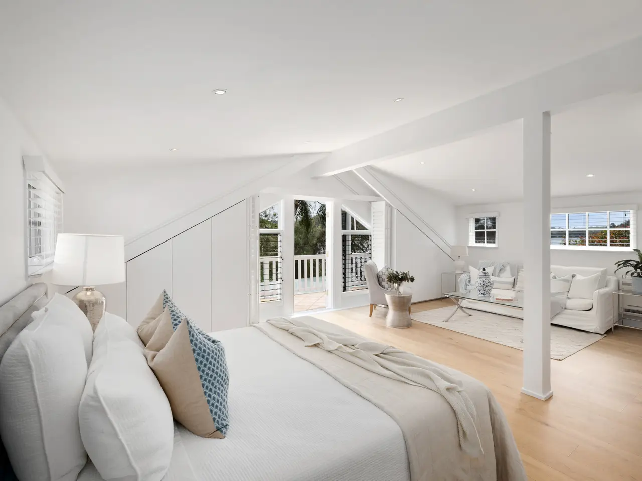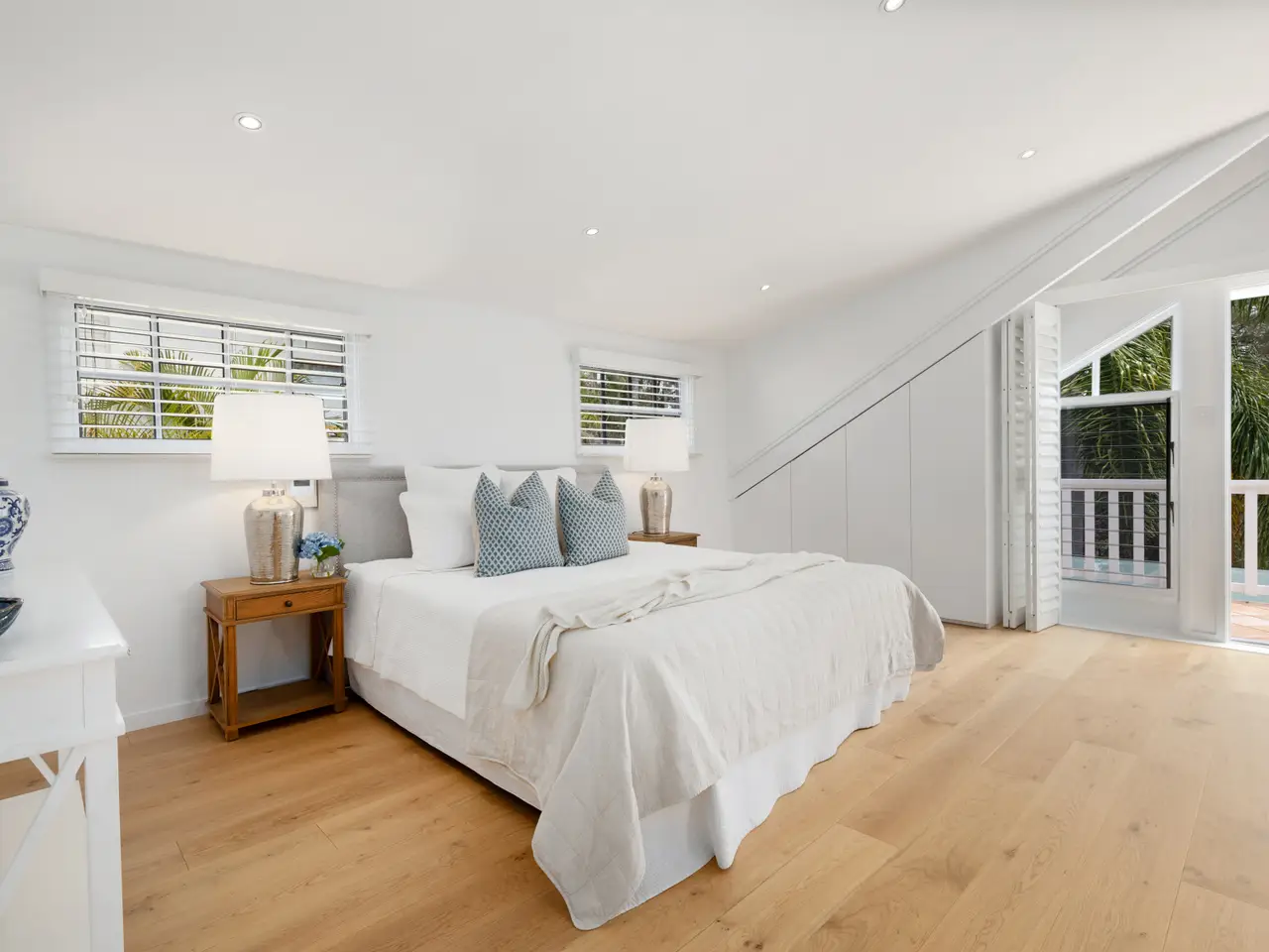 Plantation shutters and raked ceilings